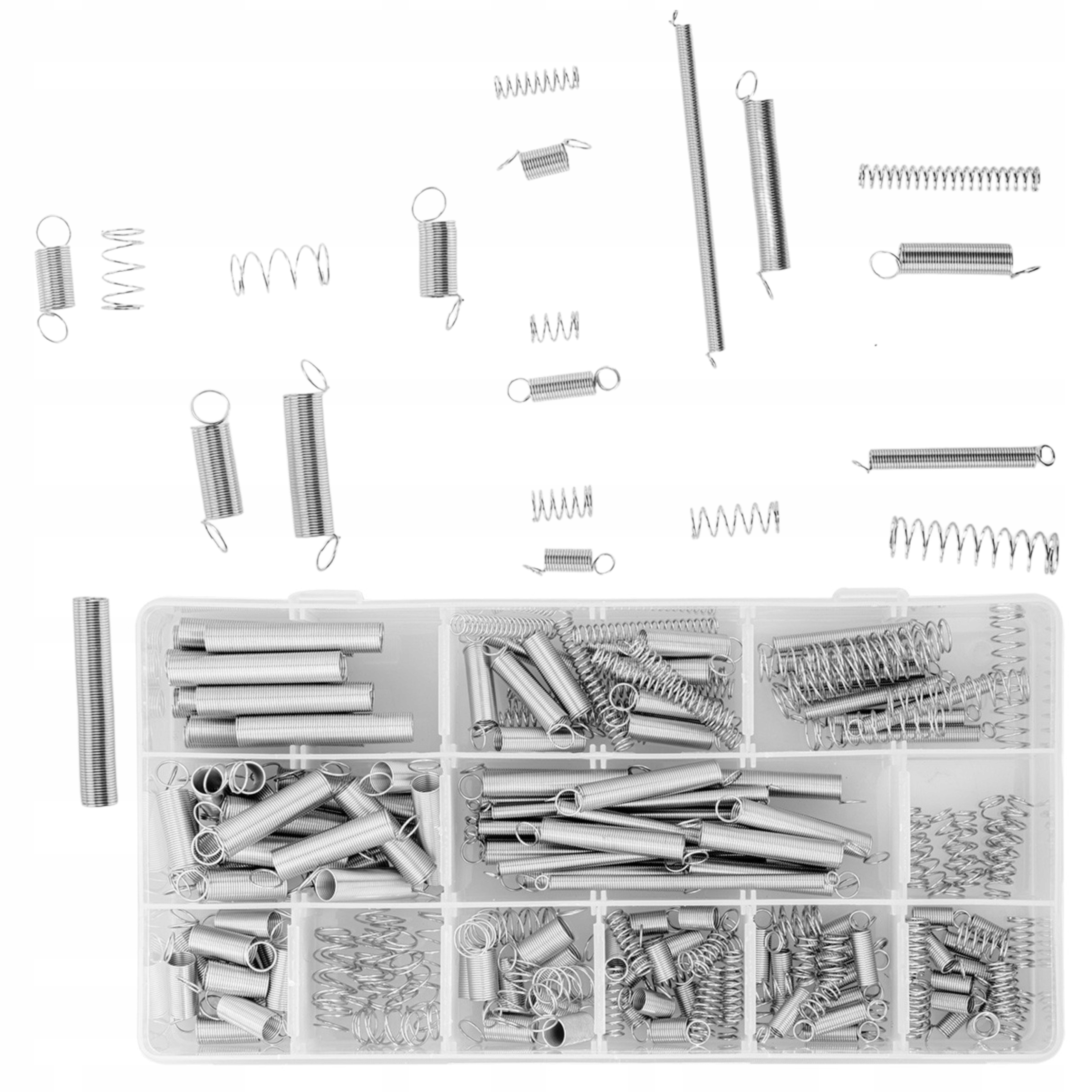 В комплект входят: Пружины: 10 х (7х38 мм), 10 х (7х51 мм), 8 х (8х28,5 мм), 10 х (8х31,5 мм), 12 х ( 8х44,5 мм)