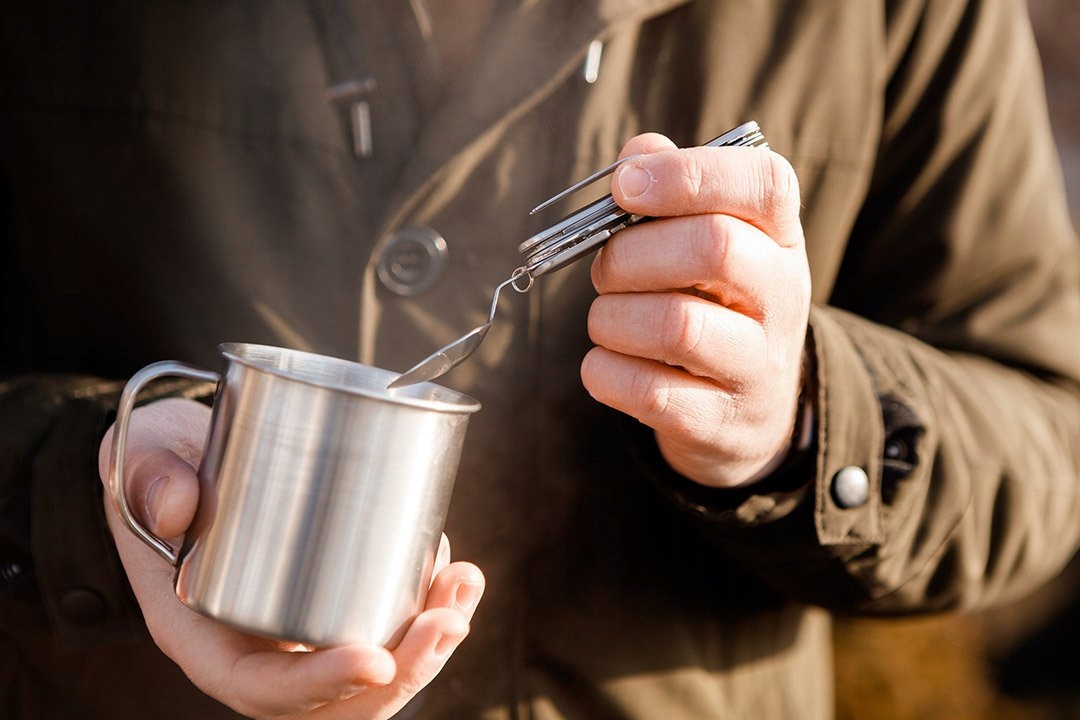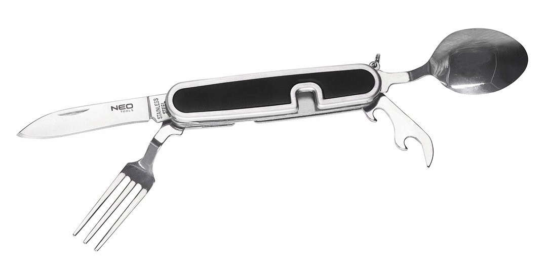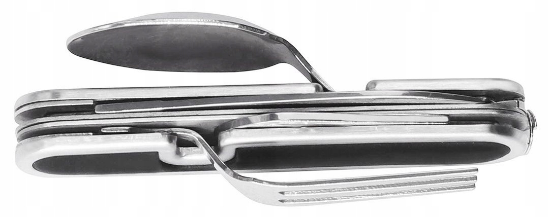 Компактное выживание должно быть в вилке, ложке, лезвии ножа, открытиле банки и бутылочки. Изготовлен из нержавеющей стали 3CR13 с твердым стальным корпусом 410 и TPR, гарантирует долговечность и удобство использования.