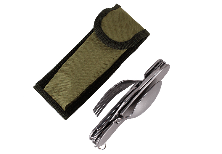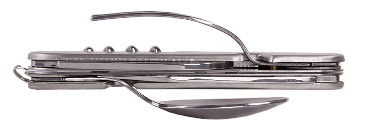 <ул>Чрезвычайно практичный набор стальных столовых приборов в виде перочинного ножа от компании Mil-Tec.