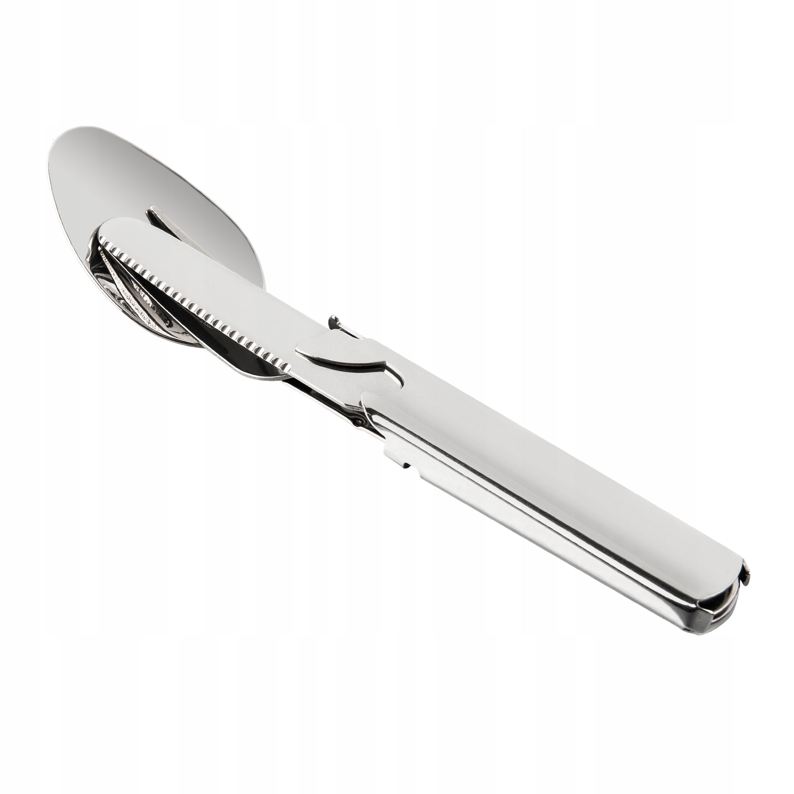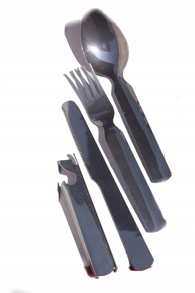 СКЛАДНОЙ ИНСТРУМЕНТ - ЛОЖКА, ВИЛКА И НОЖ СКЛАДЫВАЮТСЯ В КОРПУС С ОТКРЫВКОЙ. ЛОЖКИ ИМЕЮТ ЗАМОК, ЧТОБЫ СОЕДИНЯТЬ ВСЕ ВМЕСТЕ, ТАК ЧТО ОНИ НЕ ОТСОЕДИНЯЮТСЯ И ОСТАЮТСЯ В ТЕЛЕ