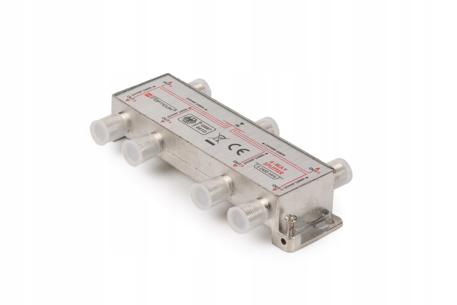 Распределитель сигналов Television-Television от антенны DVB-T2 или спутника для 6 приемников. 1 тип F ввод. 6 Опыт Ф. Адаптирован к антеннам с усилителями - передача напряжения от источника питания антенны. Частотный диапазон: 5-2400 МГц. Металлический корпус. Его также можно использовать для отделения кабеля, аналогового или цифрового телевидения, например, UPC, Multimedia, Vectra.
