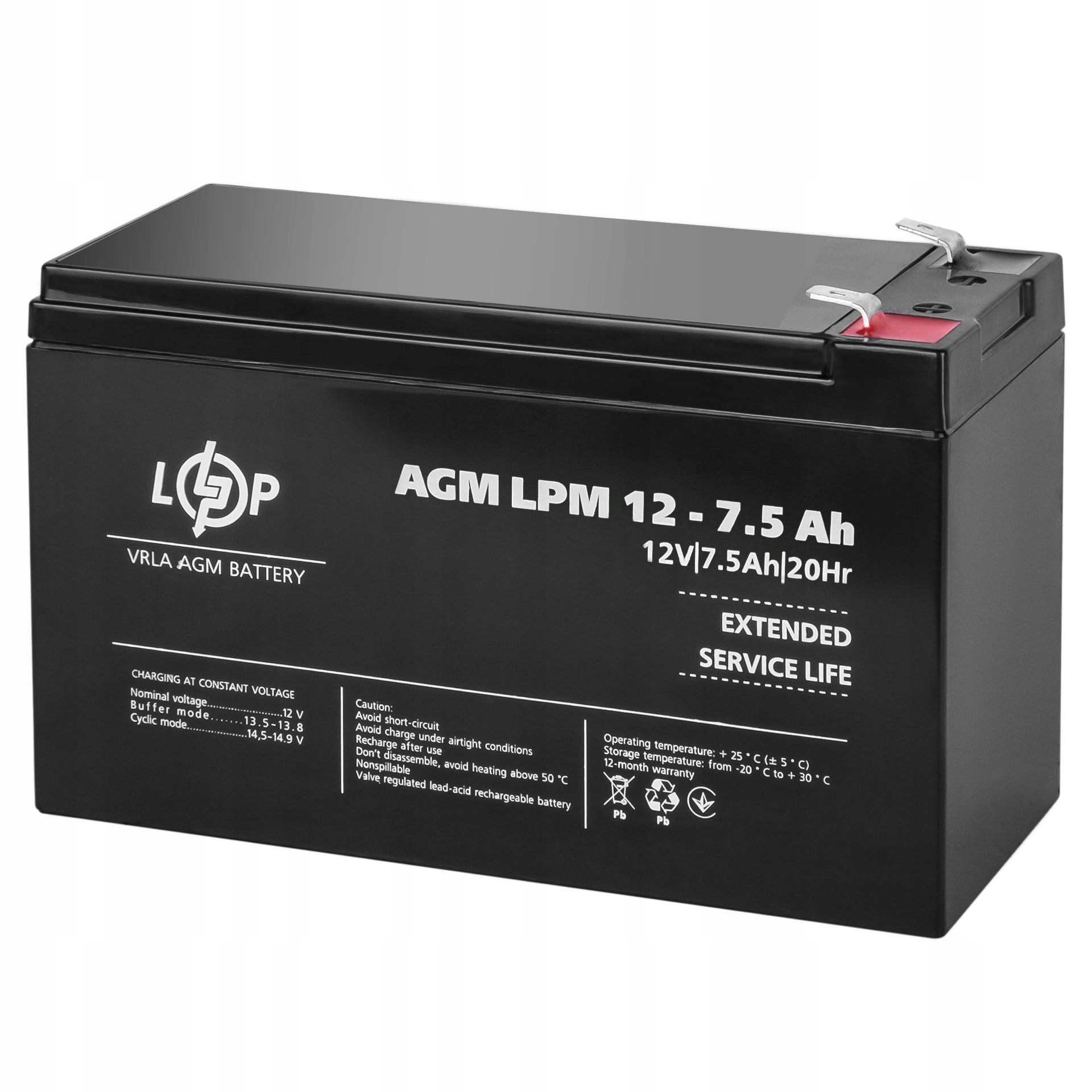 ВЫСОКОКАЧЕСТВЕННЫЙ, НЕОБХОДИМЫЙ АККУМУЛЯТОР AGM LPM 12 В - 7,5 Ач