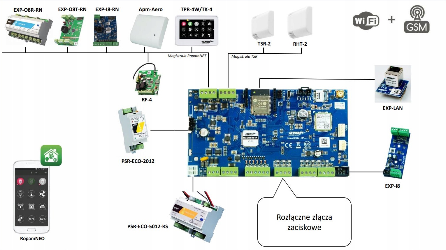 Панель управления охранной сигнализацией ROPAM NeoGSM-IP вместе с периферийными устройствами представляет собой решение, объединяющее электронную систему обнаружения взлома и домашнюю автоматику. Встроенный GSM-коммуникатор и модуль WiFi позволяют удаленно управлять системой. Благодаря модульной конструкции систему можно расширять и адаптировать к меняющимся потребностям пользователя.