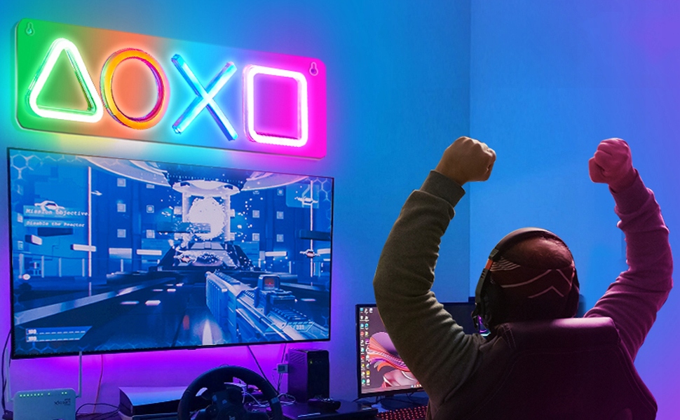 ✅Питание от USB:Неоновый игровой символ поддерживает только питание от USB и имеет переключатель для управления светодиодной подсветкой. Размеры: примерно 42 х 12,5 см, длина шнура питания 180 см.
