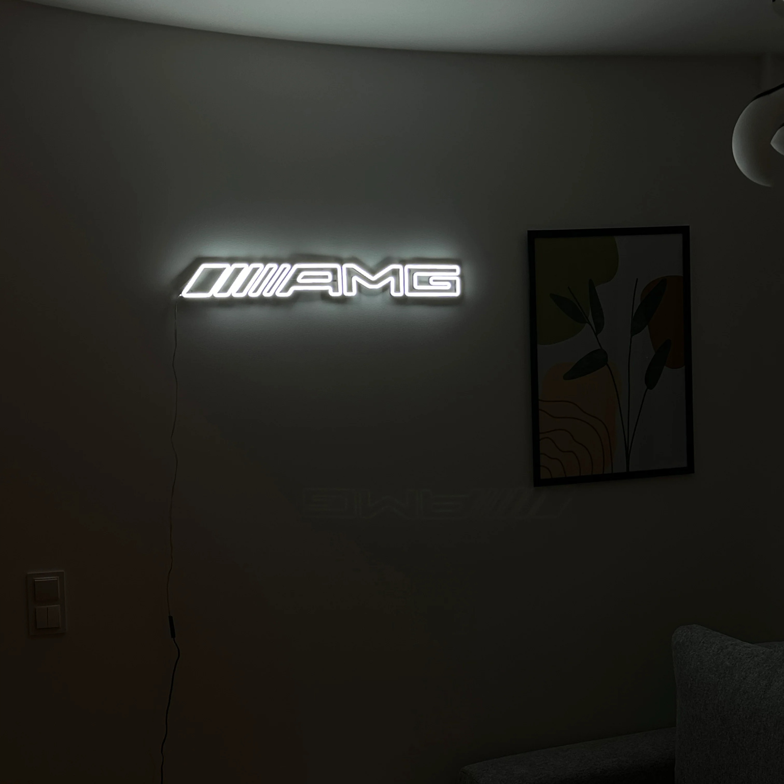 Неоновое светодиодное украшение стены Mercedes AMG логотип для гаража комнаты 77x8 см h1>