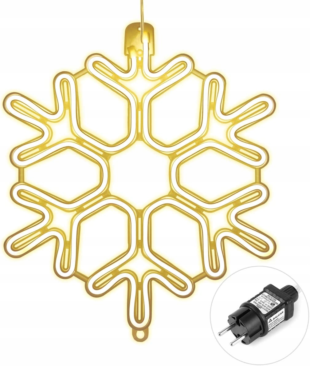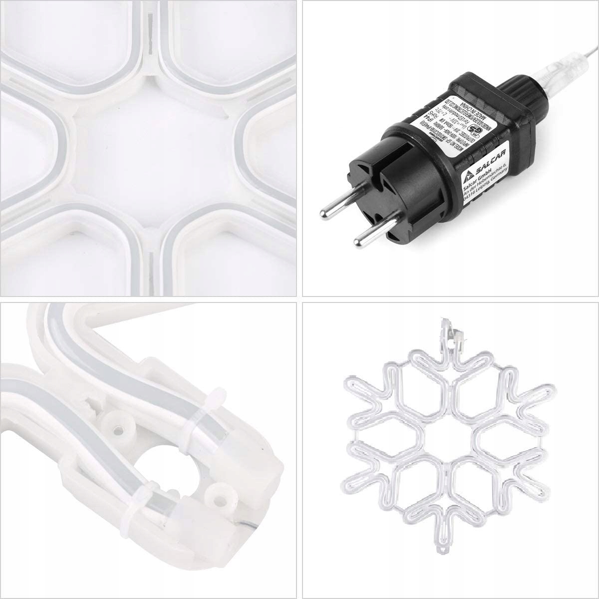 - ВЫСОКОКАЧЕСТВЕННЫЙ ДЕКОРАТИВНЫЙ СВЕТОДИОДНЫЙ СВЕТ: неоновая лампа SALCAR Snowflake оснащена 300 светодиодами диаметром 40 см и питается от адаптера низкого напряжения длиной 3 м, 31 В. . Он имеет теплый белый цвет (3000 К) и защиту от брызг IP44.