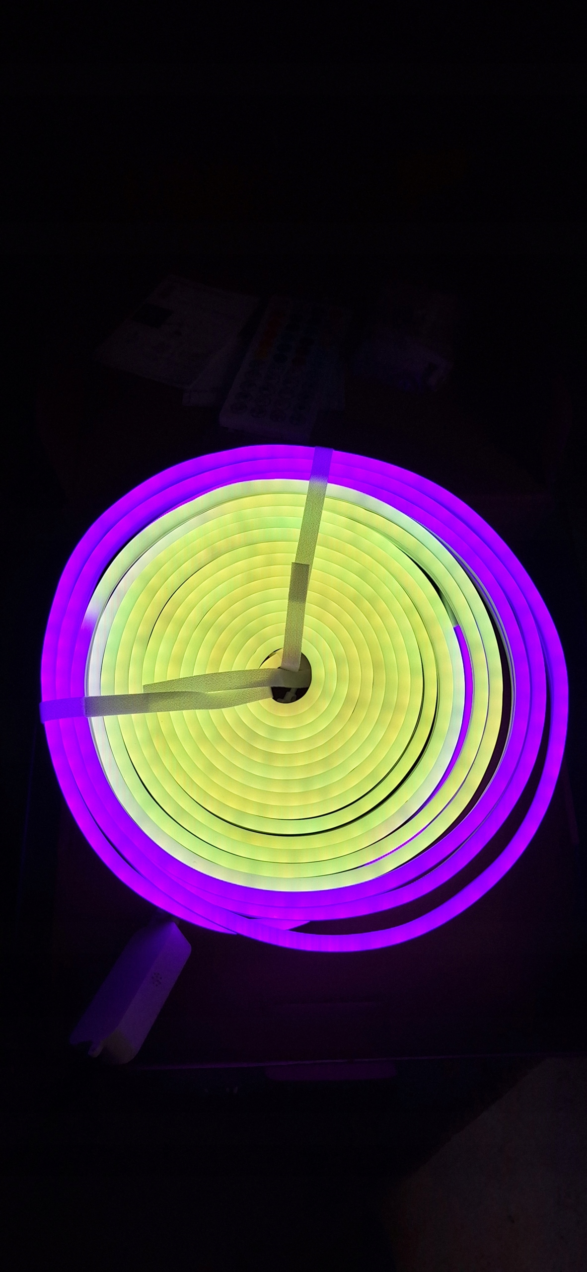 - Светодиодной неоновой лентой можно управлять с помощью высокочастотного пульта дистанционного управления, 3-кнопочного контроллера и приложения.