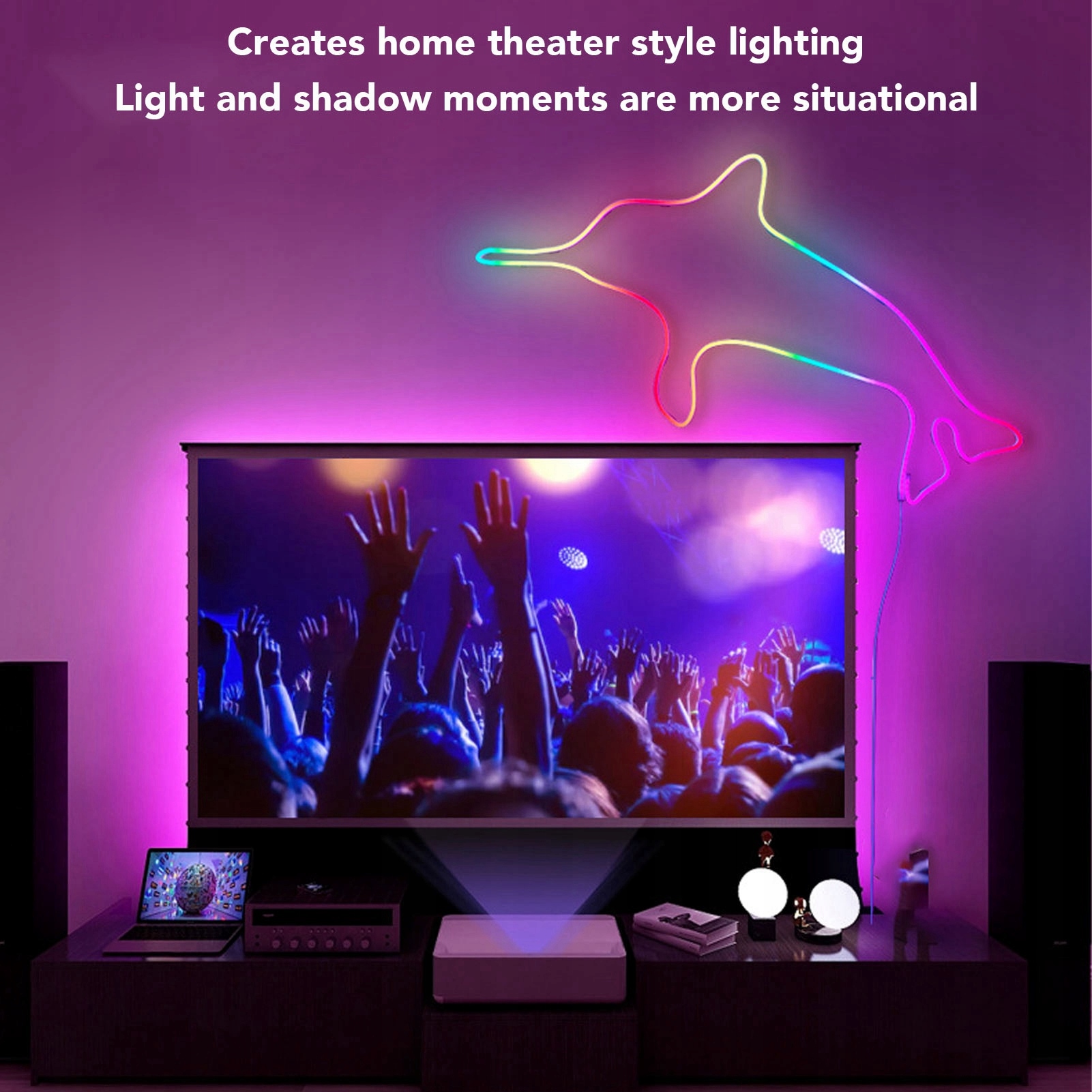 6. Легко определить атмосферу: неоновые полосы для украшения дома, с помощью этих красивых светодиодных неоновых ламп RGB вы можете добавить романтические цвета в свой дом, который можно украсить в различных сценах, таких как спальни, игровые комнаты и т. д. Чтобы сделать среду уникальной и создать хорошую атмосферу