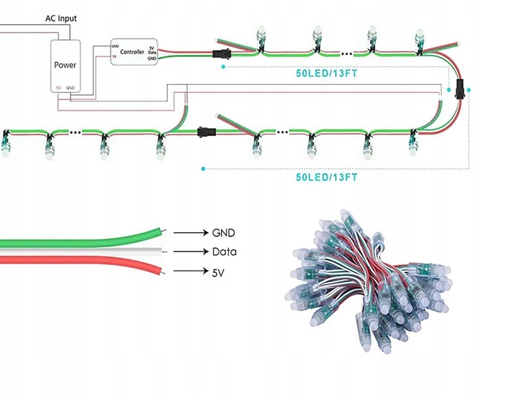 Неопиксельный светодиод×50 5В WS2811 IP65