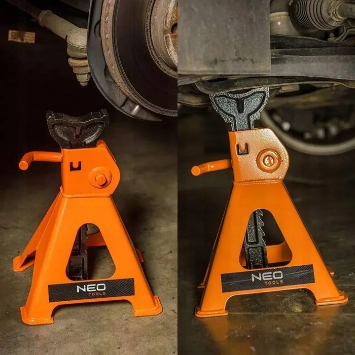 Набор включает в себя две регулируемые наставные базы мастерской с емкостью нагрузки 3T. Их высота может быть точно адаптирован в диапазоне от 295 до 415 мм, что позволяет вам работать с различными типами транспортных средств. Это надежная страховка во время ремонта или технического обслуживания.