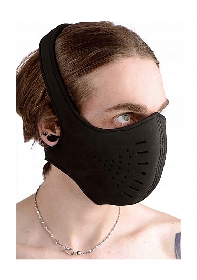 НЕОПРЕНОВАЯ ЭРОТИЧЕСКАЯ МАСКА БДСМ МОРДА - ЧЕРНАЯ AD635 - НЕОПРЕНОВАЯ КНОПКА НА ЛИЦЕ МАСКА - ЧЕРНАЯ