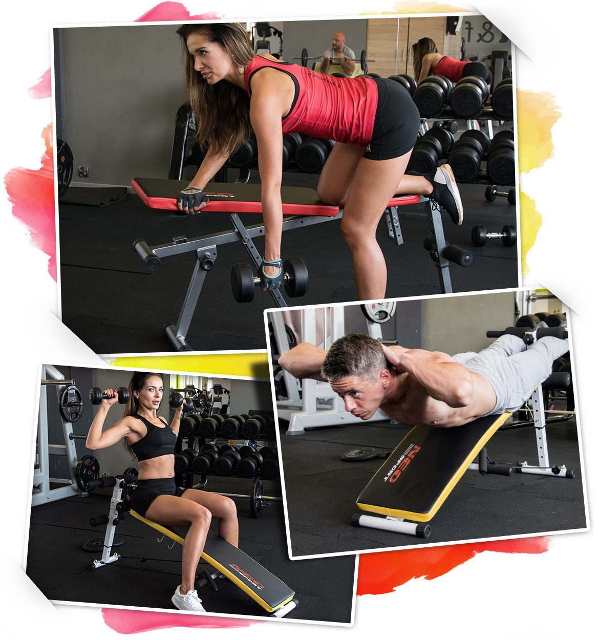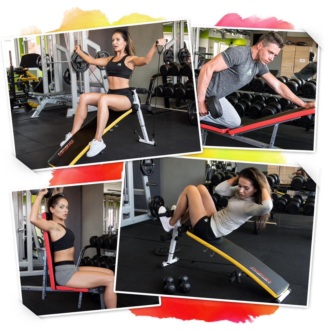 Регулируемая скамья с эспандерами и гантелями