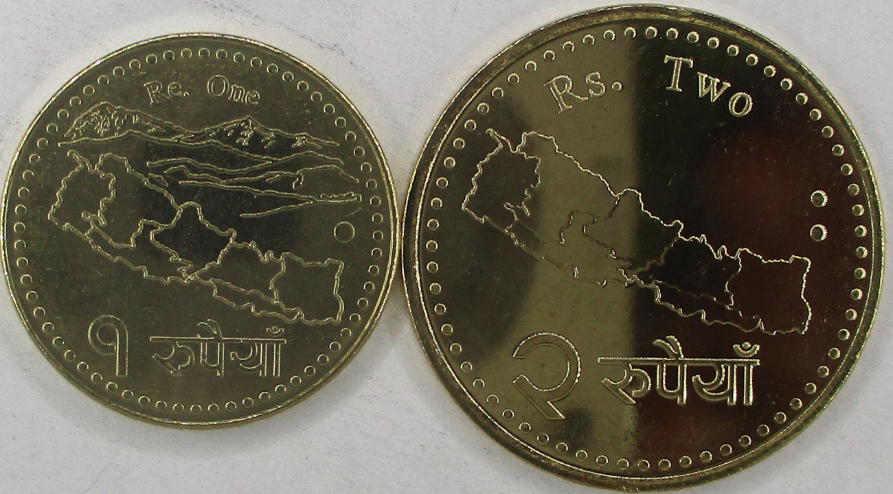 NEPAL різні щорічники КАРТА набір з 2 монет 1 і 2 рупій