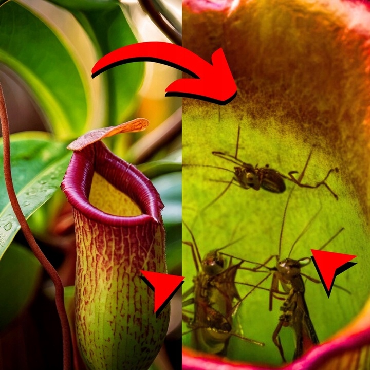 ✅ Мухи и комары – классика в меню кувшинчика. Он привлекает их своим ароматом, и когда они входят в кувшин, они скользят прямо в «пищеварительную ванну».