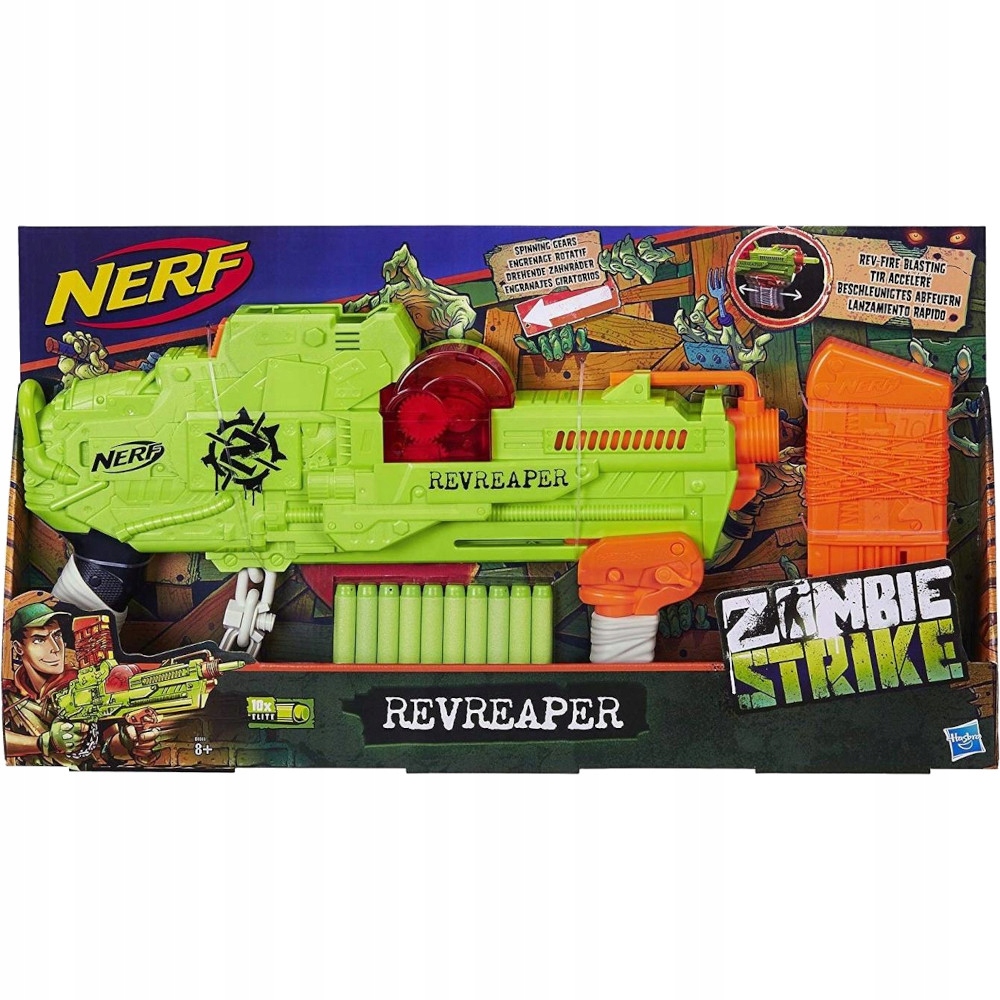 Пистолеты Nerf -это хорошо известные наборы оружия, которые позволяют вам играть совершенно безопасно. Стрелки из пены, благодаря тому, что веселье не могло произойти, они сделаны из губчатой, красочной пены и закаленного наконечника, чтобы они не повредили от выстрела. Каждая из пусковой установки NERF была сделана из материалов из высшего класса. Nerf Zombie Strike Revreaper Launcher, разработанный с видимым механизмом передачи, так что вы можете наблюдать оборот на выстреле. Комплект включает в себя 10 стрелок зомби