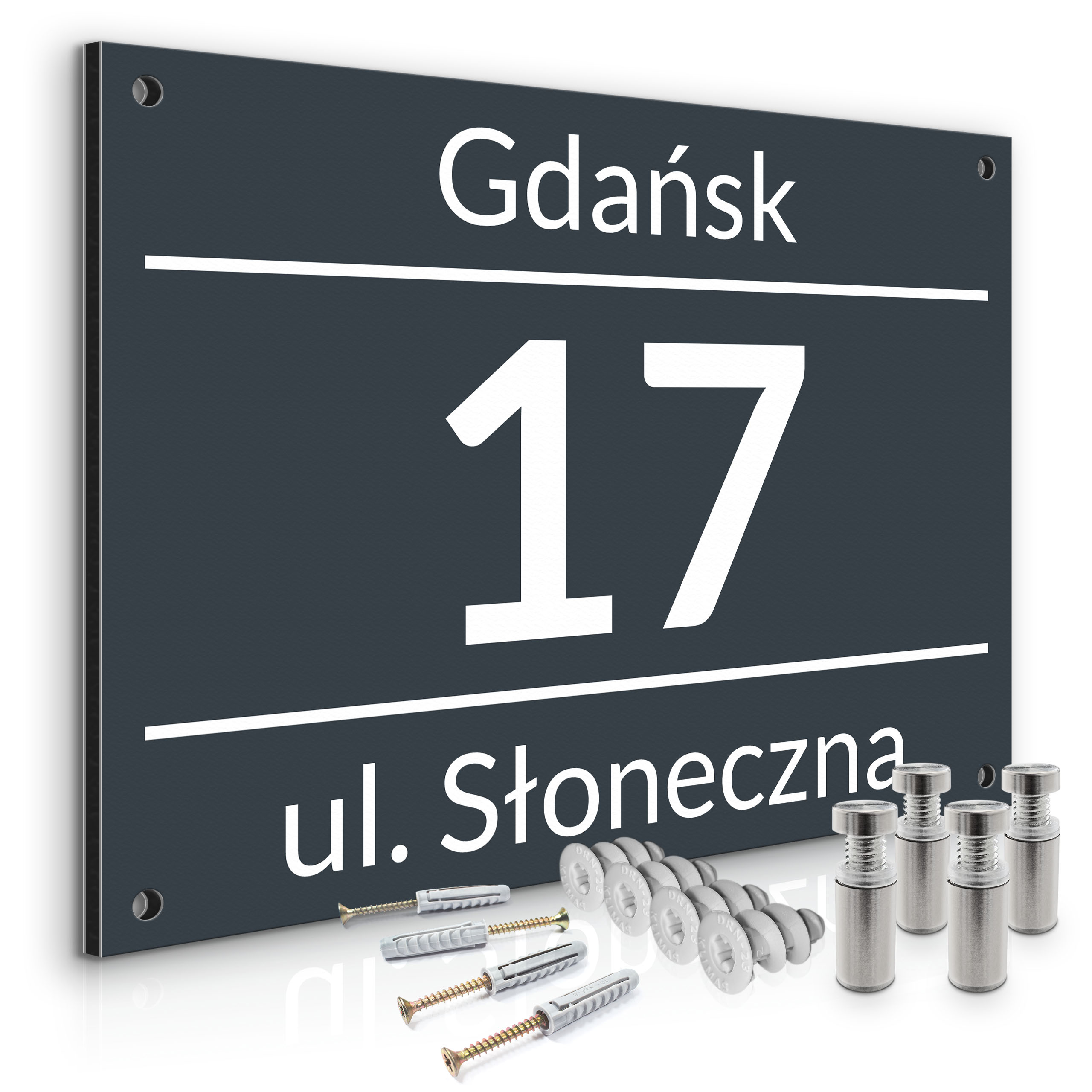 НЕРЖАВЕЮЩАЯ НЕРЖАВЕЮЩАЯ НОМЕР ДОМА 40x30см АДРЕСНАЯ ТАБЛИЧКА С НОМЕРОМ ДОМА АНТРАЦИТ + ПРОСТАВКИ + ВИНТЫ + ШПИЛЬКИ + УЛИТКИ