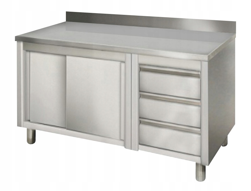 НЕРЖАВЕЮЩИЙ РАБОЧИЙ СТОЛ, ШКАФ С ПЛИТУ, НЕРЖАВЕЮЩАЯ СТАЛЬ, INOX, 3 ЯЩИКА