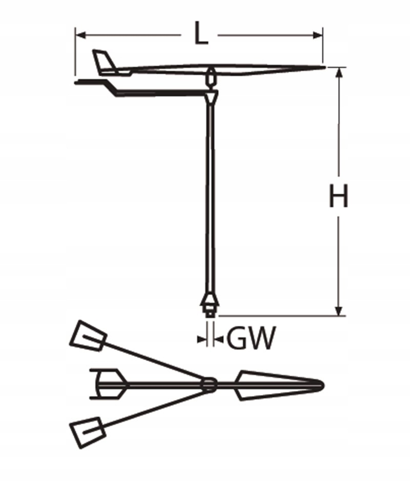 Вимпел изготовлен из нержавеющей стали А2 - AISI 304, снизу покрыт яркой лентой, улучшающей видимость индикатора, установленного на мачте.Рычаги Вимпела (указателя курса) регулируемые, каждый моряк может отрегулировать их. к своей лодке. Мачта имеет резьбовой конец с гайкой.