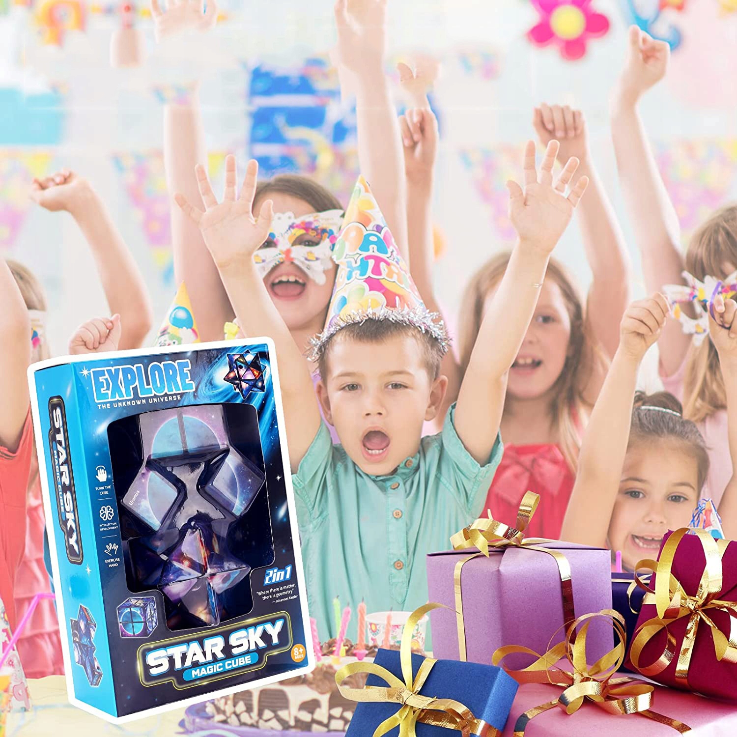 [3D Galaxy Cube]: Этот куб имеет красивые галактики, включая Сатурн, Уран, Плутон, Землю, Луну и Венеру. Игра с этим трехмерным кубом может улучшить чувство цветов и воспоминания о детях в возрасте 6-12 лет. Это также может развивать понимание детей геометрического пространства. Потрясающий звездный куб более привлекателен, чем традиционный волшебный куб. Изысканные дизайны достаточно для 7 8,9 10 -летних мальчиков и девочек любят их.