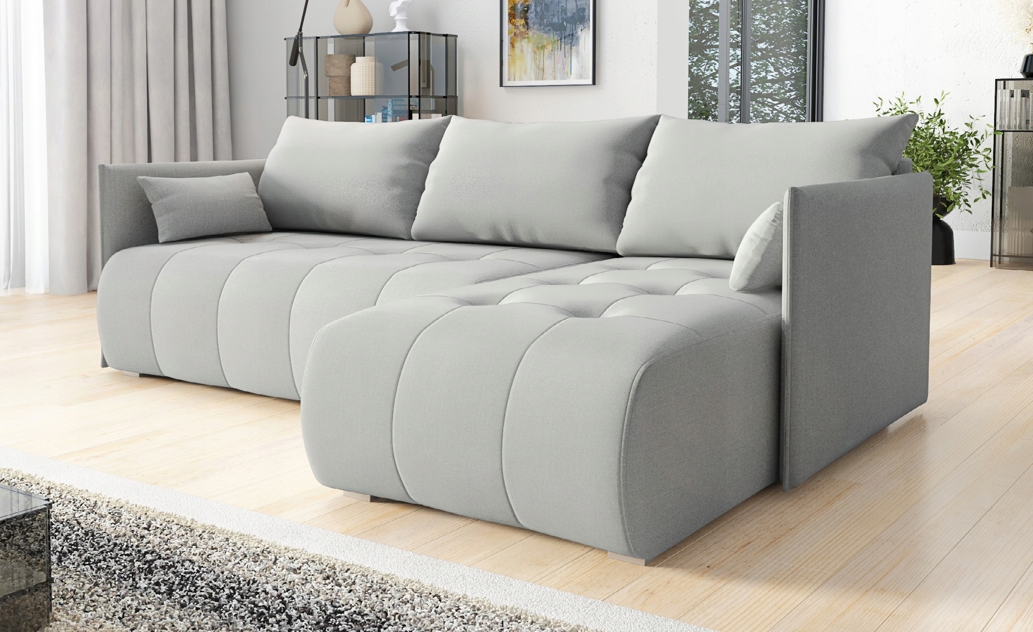ness Corner - это современный вид и отличная функциональность. Современный внешний вид дает ему уникальные глубокие стеганые и округлые формы, высокие боковые спинки придают диван. Nessa была оснащена контейнером для постельных принадлежностей под сиденьем и функцией сна. Диван изготовлен из очень гибкой пены, которая в сочетании с волнистыми источниками гарантирует, что комфорт сидения дополняется большими мягкими подушками на заднем дворе.