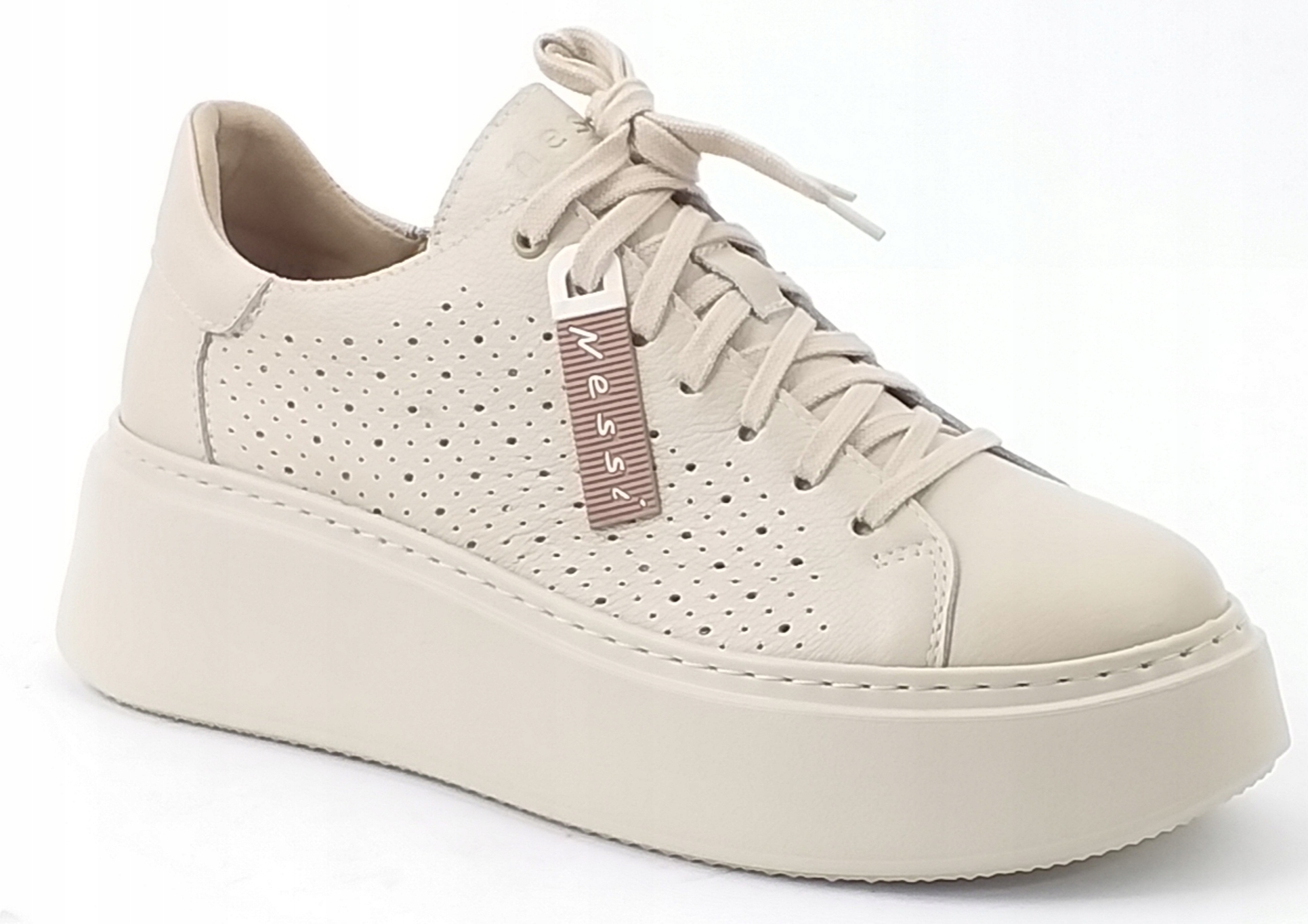 NESSI 24579 КОЖАНЫЕ КРОССОВКИ ЖЕНСКИЕ НА ПЛАТФОРМЕ БЕЖЕВЫЙ 39