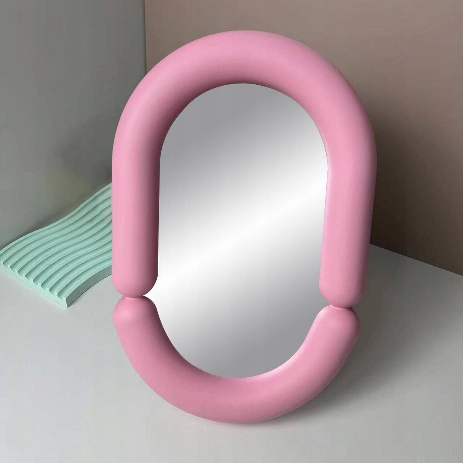 Зеркало для макияжа необычной формы, стильное декоративное настольное зеркало для туалетного столика, овальной формы, розовое