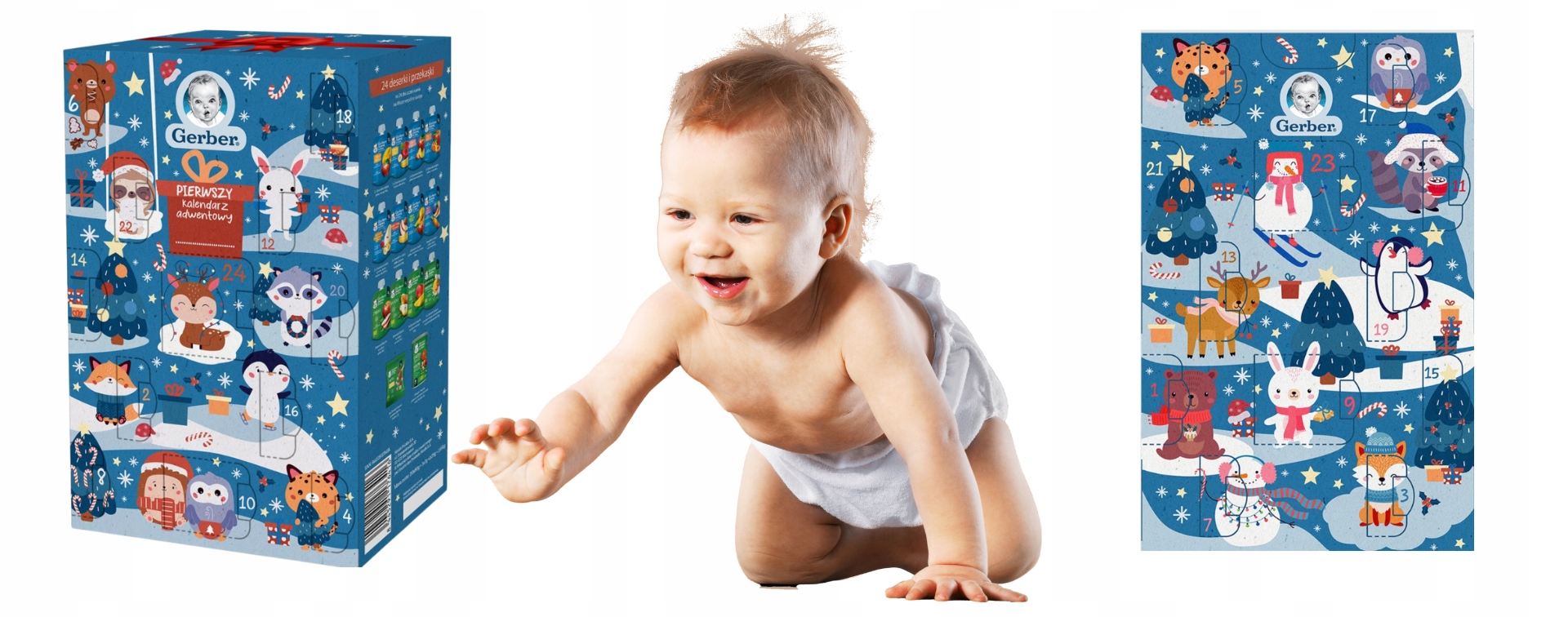 Адвент-календарь Gerber создан для того, чтобы сделать ожидание Рождества еще более радостным и... вкусным, особенно для самых маленьких членов семьи. Это первый и единственный календарь в Польше, полный интересных вкусов без добавления сахара*, каждый из которых соответствует строгим стандартам качества продуктов питания для младенцев и маленьких детей. Там, среди прочего, малыши найдут