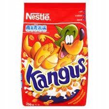 Хлопья для завтрака Nestlé KANGUS — это хрустящие и пышные пшеничные зерна, покрытые золотистым медом. Идеальное начало дня!