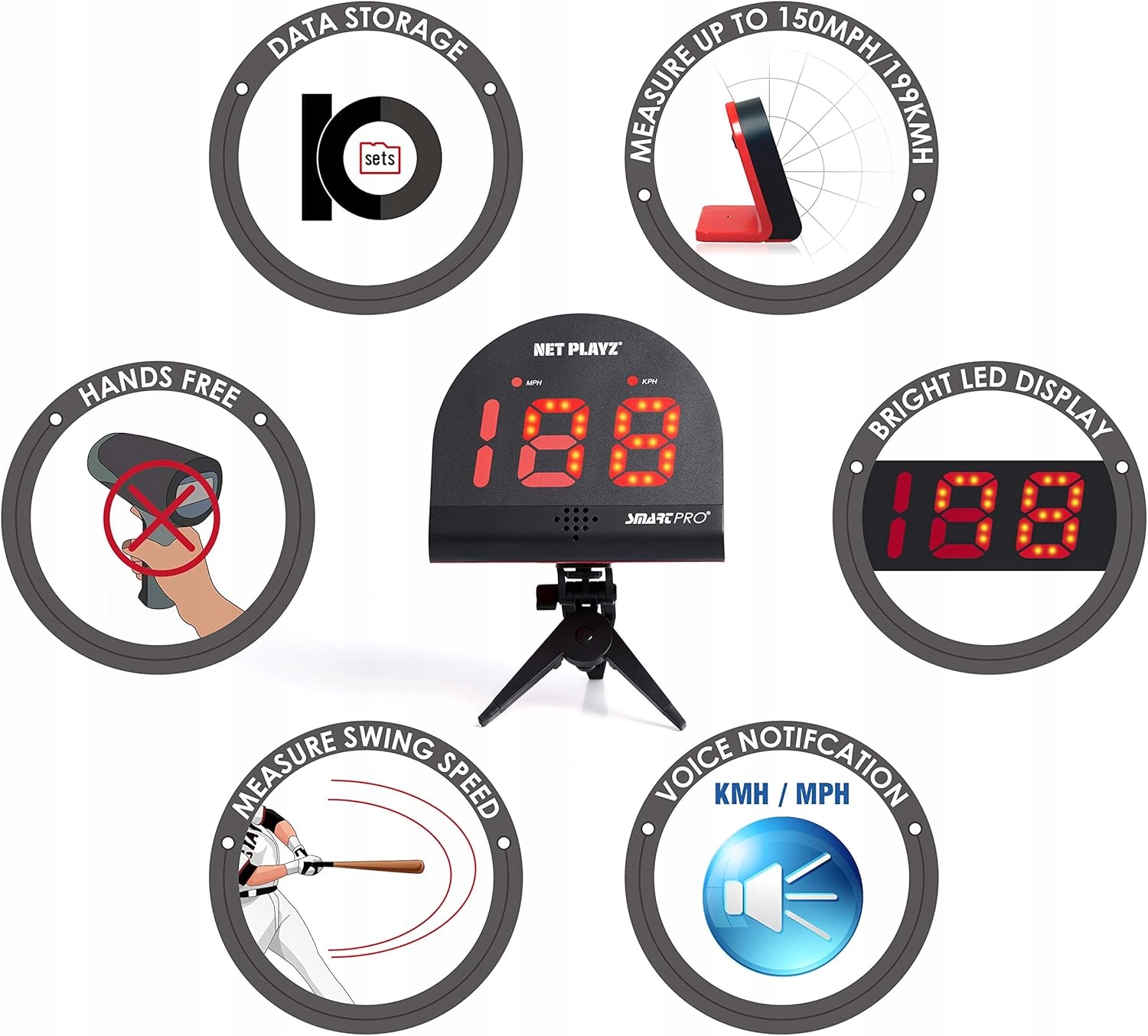 net playz speed Радар подходит для широкого спектра спорта. Его можно использовать в футболе, теннисе, водолазке, бейсболе, хоккее, лакроссе и т. Д. производительность. Этот радар имеет передний динамик для голосования измеренной скорости, благодаря более низким размерам (длина x ширина x высота) 11 x 18 x 15 см и низкий вес 380 г (без батарей) легко переносить, просто положите его в рюкзак и пойти на тренировку. Набор также включает в себя дополнительный складной штатив и портативный радиолокационный пакет. Радар питается 5 батареями АА, которые не прикреплены к набору