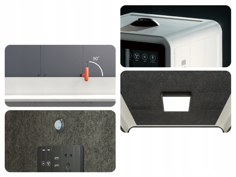 Современная звукоизоляционная акустическая кабина - это абсолютный удар в современных интерьерах офисов открытого пространства, офисов, аэропортов, отелей. Кабина предоставляет возможность провести телефонные звонки или телеконференции в удобных условиях, в которых вы можете сосредоточиться на разговоре и вести его, не беспокоя коллеги. Застекленная дверь и задняя часть кабины заставляют кабину выглядеть чрезвычайно легким и украшают интерьер, в котором она находится. Небольшая практическая телефонная будка будет работать в основном в современном офисе, характеризуемом инновациями и очисткой современных решений. Кабина была изготовлена из высококачественного сырья, обеспечивающего адекватную звукоизоляцию. Внутренний дизайн и отделка побуждают вас использовать это удобное место, когда возникает необходимость.