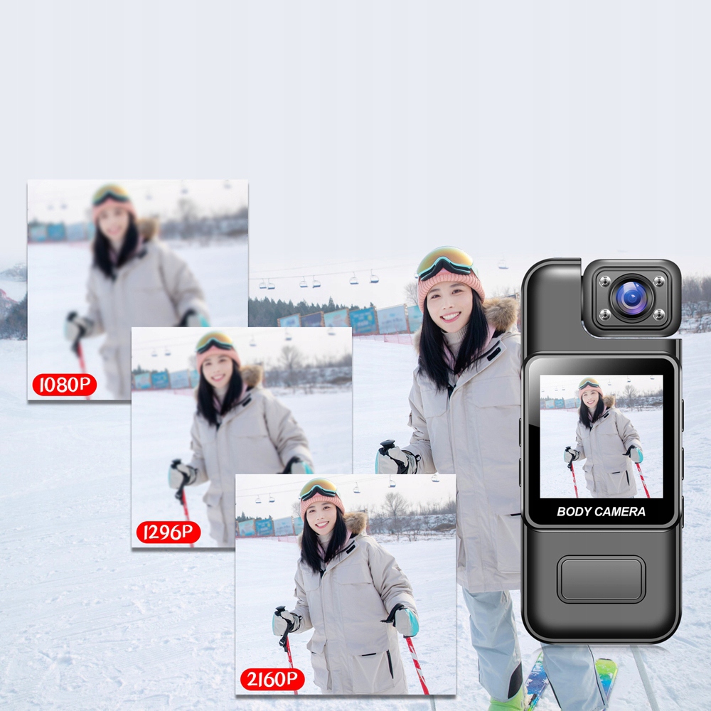 Эта камера, носимая на теле, имеет вращающуюся линзу с 180 ° и широкий вид с углом 130 °, обеспечивая широкий диапазон операции по безопасности. Независимо от того, принимаете ли вы селфи или фотографирующие ландшафты, он предлагает уникальную перспективу, чтобы поделиться своим опытом в ясном и градусе.