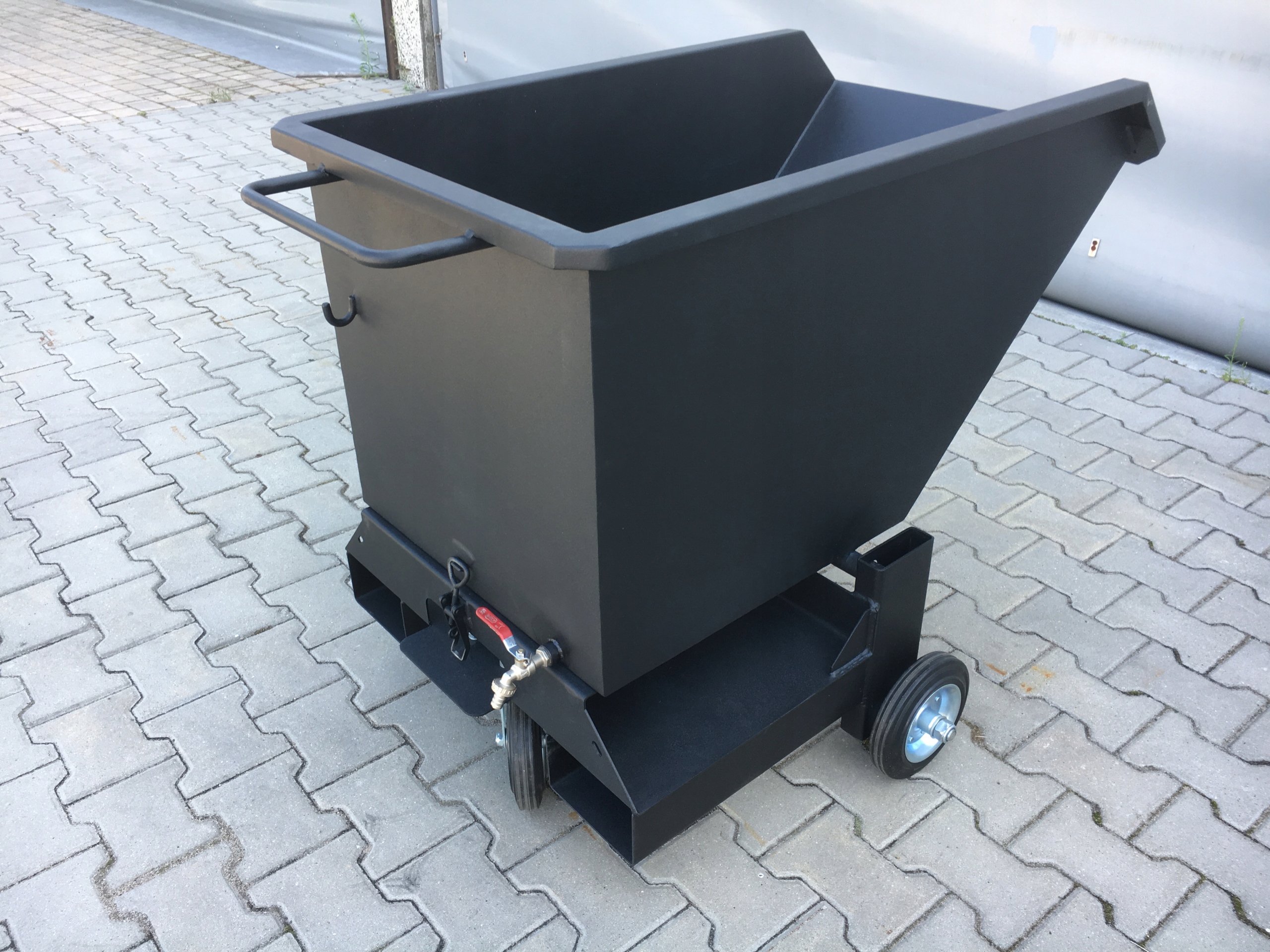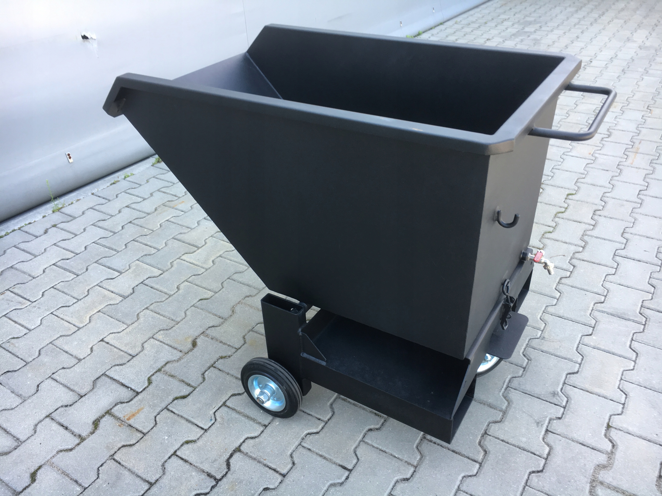 проварен с обеих сторон. Он прост в использовании, чтобы опрокинуть контейнер, достаточно отстегнуть предохранительное устройство, расположенное на задней стенке контейнера.