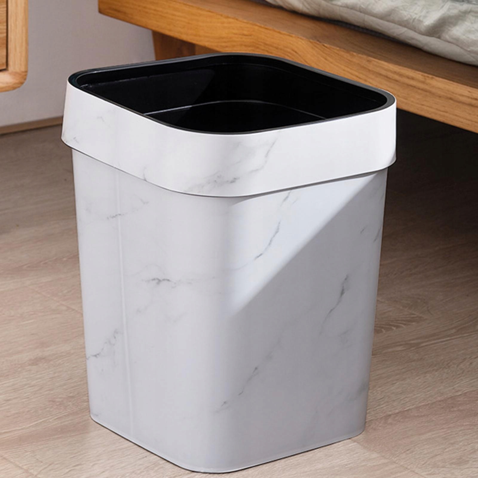 [Практичный дизайн]: квадратное мусорное ведро для ванной, емкостью 14 литров, с открытым горлышком, легко выбрасывать мусор.