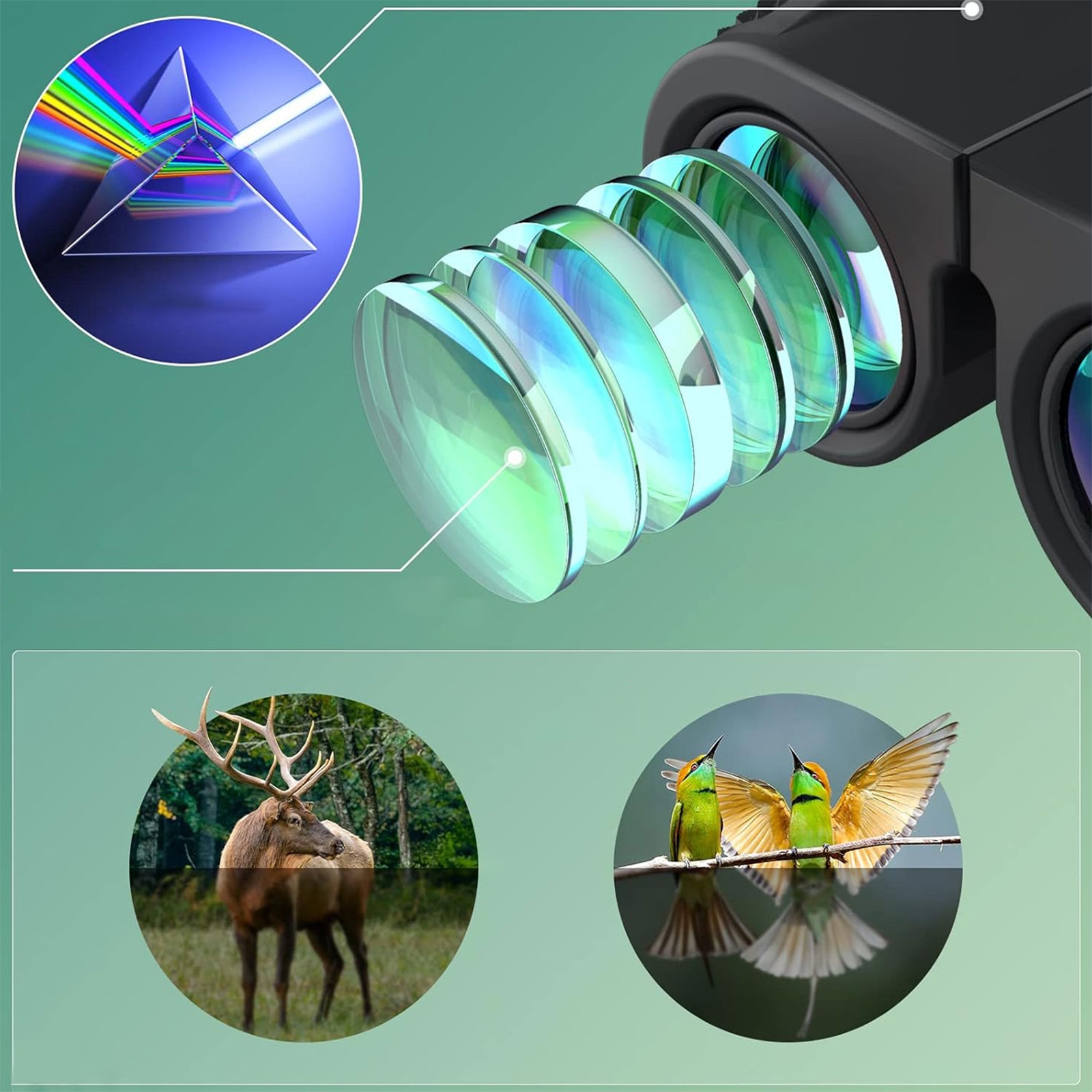 🔹 Водонепроницаемый дизайн - Бинокль устойчив к влаге и дождям, что позволяет использовать в различных погодных условиях.