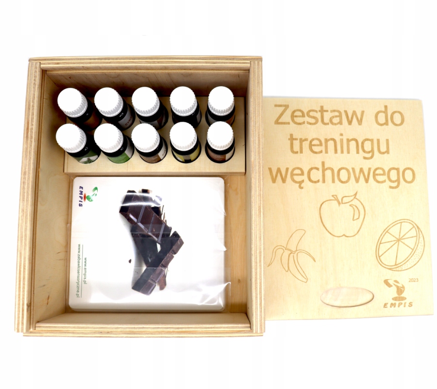 Необходимая помощь, среди прочего, для терапевтов сенсорной интеграции. 5 ароматов, которые предназначены для того, чтобы успокоить ребенка и 5 стимулирующих ароматов. Стимуляция обоняния во время приятного веселья, связанного с сопоставлением запаха с картой, что иллюстрирует этот аромат двумя способами. В наборе из 10 эфирных масел 10 двойных карт, иллюстрирующих тип аромата, и все это помещено в красивую деревянную коробку.