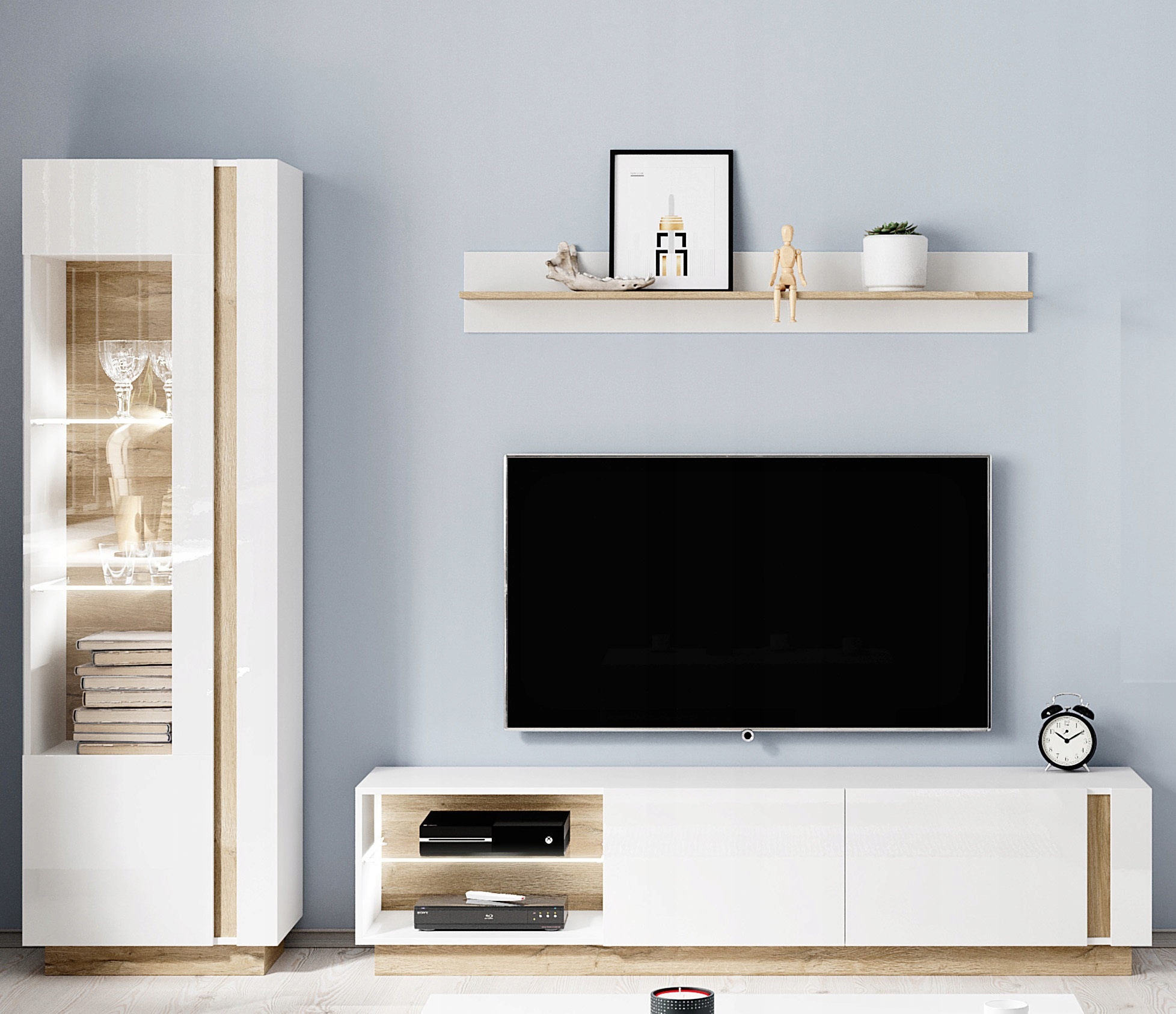 Невеликий набір меблів для вітальні зі склопакетом і тумбою під телевізор