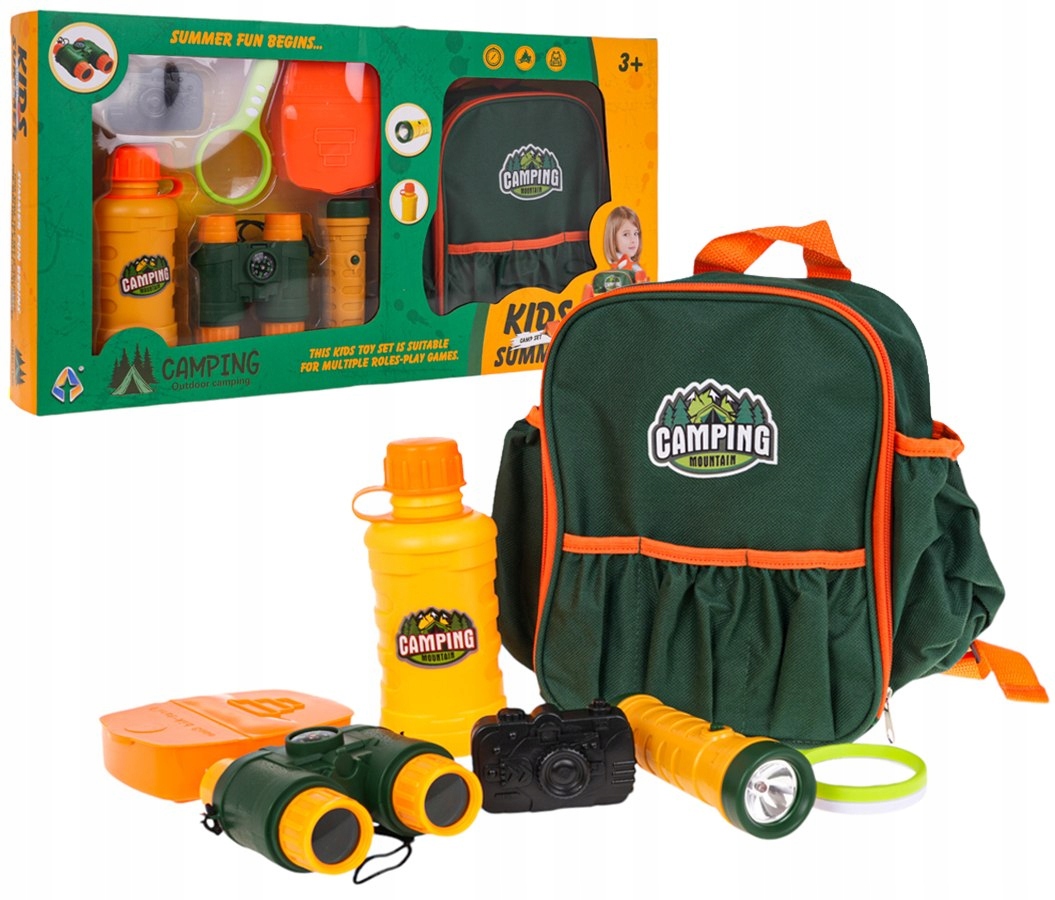 Набор маленького исследователя с рюкзаком + аксессуары из 3 лет. Комплект включает в себя рюкзак, бинокль, фонарик, увеличительное стекло, контейнер для напитков, контейнер для еды, камера. Рюкзак содержит многочисленные отсеки, чтобы он мог вместить все оборудование небольшого исследователя. Фонарик питается на 2 x AAA 1,5 В батареи (не входит в комплект).