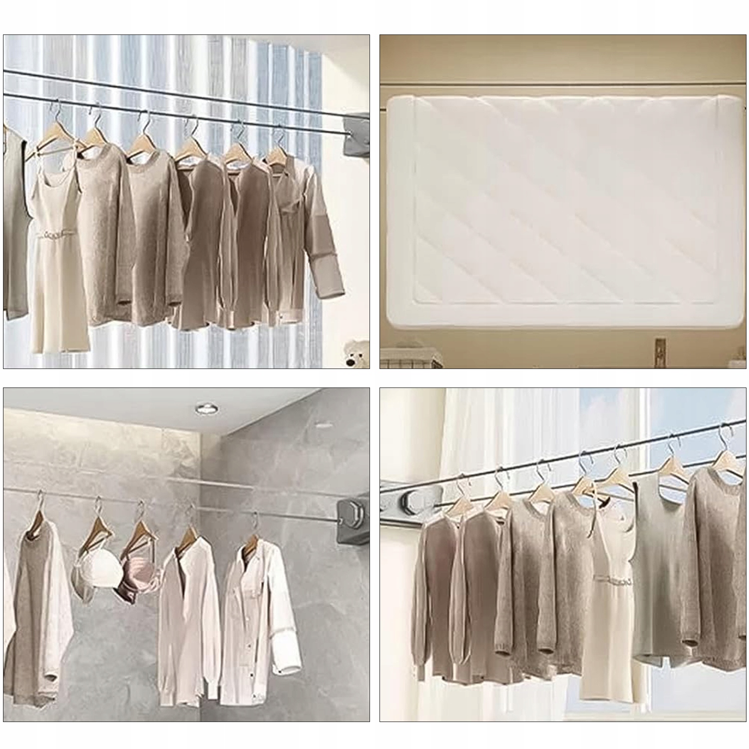 Настенная сушилка для белья предлагает гибкие варианты сборки, обеспечивая как удобную установку без бурения (например, установка клея) и постоянной установки с бурением, в зависимости от материала стены. Оба метода быстро и просты в использовании, не требуя специализированных инструментов. Подходит для широкого спектра расположения, от спальни, ванных комнат и прачечной до балконов, легко адаптируясь к потребностям сушки в каждом пространстве.