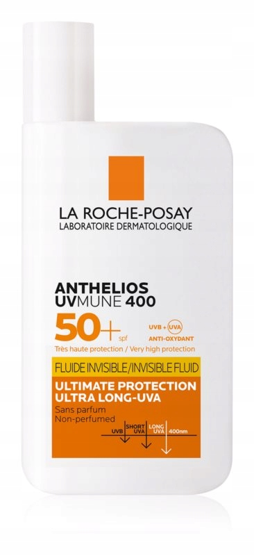 La Roche-Posay Anthelios UV Mune невидимый солнцезащитный флюид для лица, обеспечивающий высочайшую защиту от UVA + UVB + сверхдлительный срок годности защита от UVA-излучения и повышение сопротивляемости кожи. Флюид содержит новый фильтр MEXORYL400, который защищает кожу от сверхдлинных лучей UVA длиной до 400 нм, тем самым защищая от глубокого повреждения клеток. Благодаря запатентованной технологии XL-PROTECT помогает защитить от появления свободных радикалов, ответственных за окислительный стресс клеток, вызванный лучами UVA и UVB. Формула с высокой переносимостью снижает риск кожных реакций и позволяет наносить крем на область вокруг глаз. Жидкая и сверхлегкая консистенция, с нежирным и нелипким послевкусием. Не оставляет белых следов.