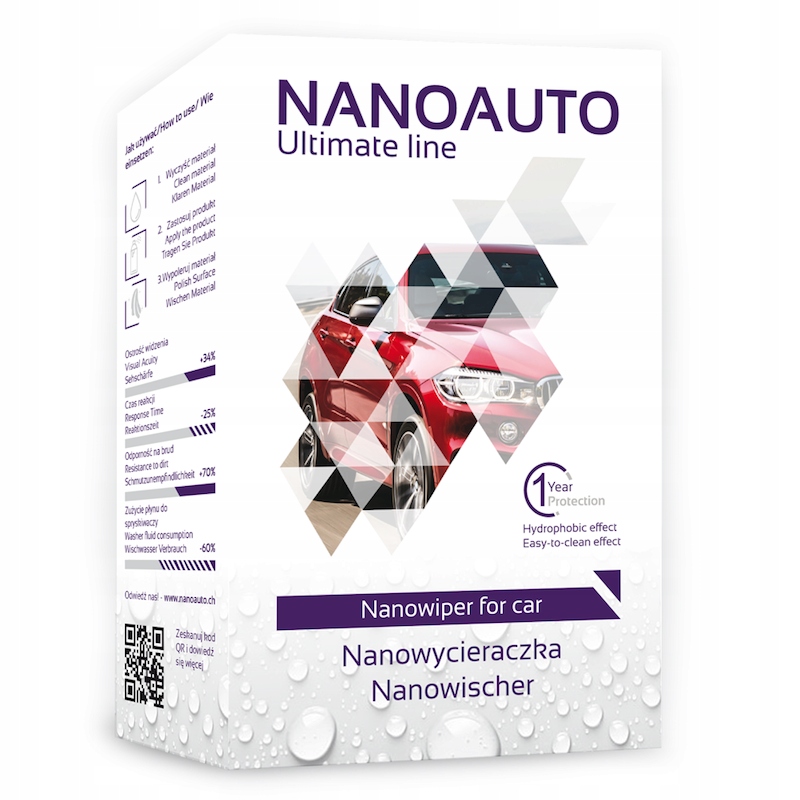 Мы все знаем, насколько сложны условия вождения во время дождя - помимо скользких, у нас также есть проблема с видимостью. Иногда бывают моменты, когда дождь падает настолько сильно, что дворники не могут идти в ногу с «сбором воды». Nanoauto - это нанотехнологическая подготовка высочайшего качества для форматирования поверхности стекла по шкале нанометров. C rorts, раздавленные до размера нескольких нанометров, заполняют микроскопическую неровность на поверхности стекла, что делает совершенно гладкой. Капли дождя в виде маленького жемчуга в мигании глаз исчезают, оставляя чистое и сухое стекло .