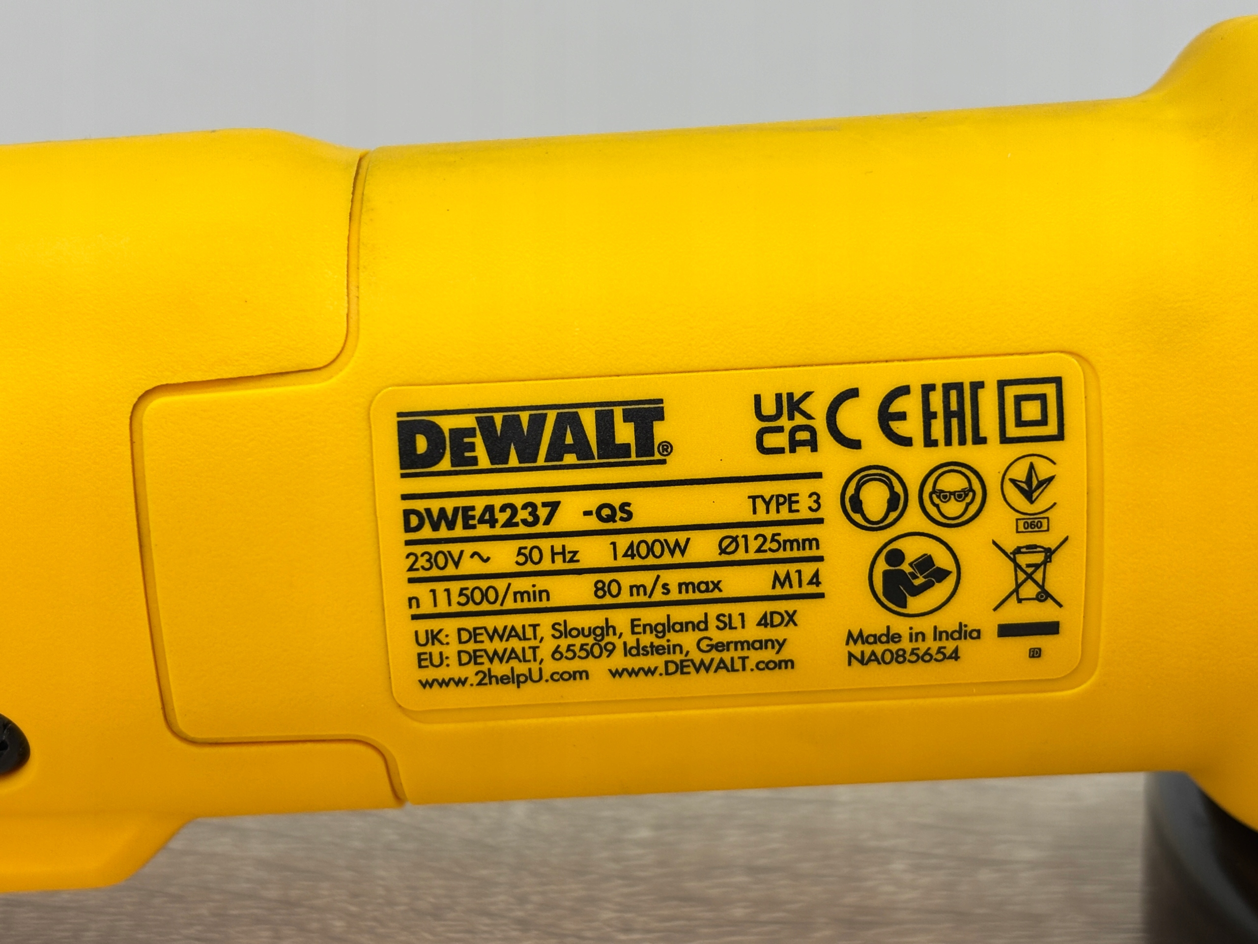 DWE4237-QS-это профессиональный угловой штифровой и 125 мм, предназначенный для интенсивной работы. Имеет перегрузку и перезагрузить защиту и систему снижения пыли. Новая копия, неиспользованная, продана в полном наборе.