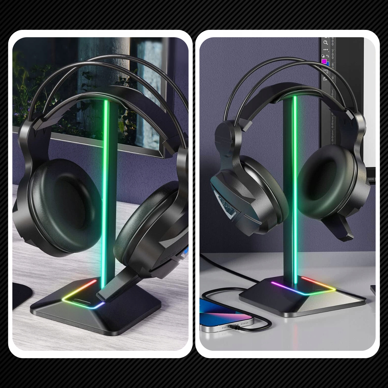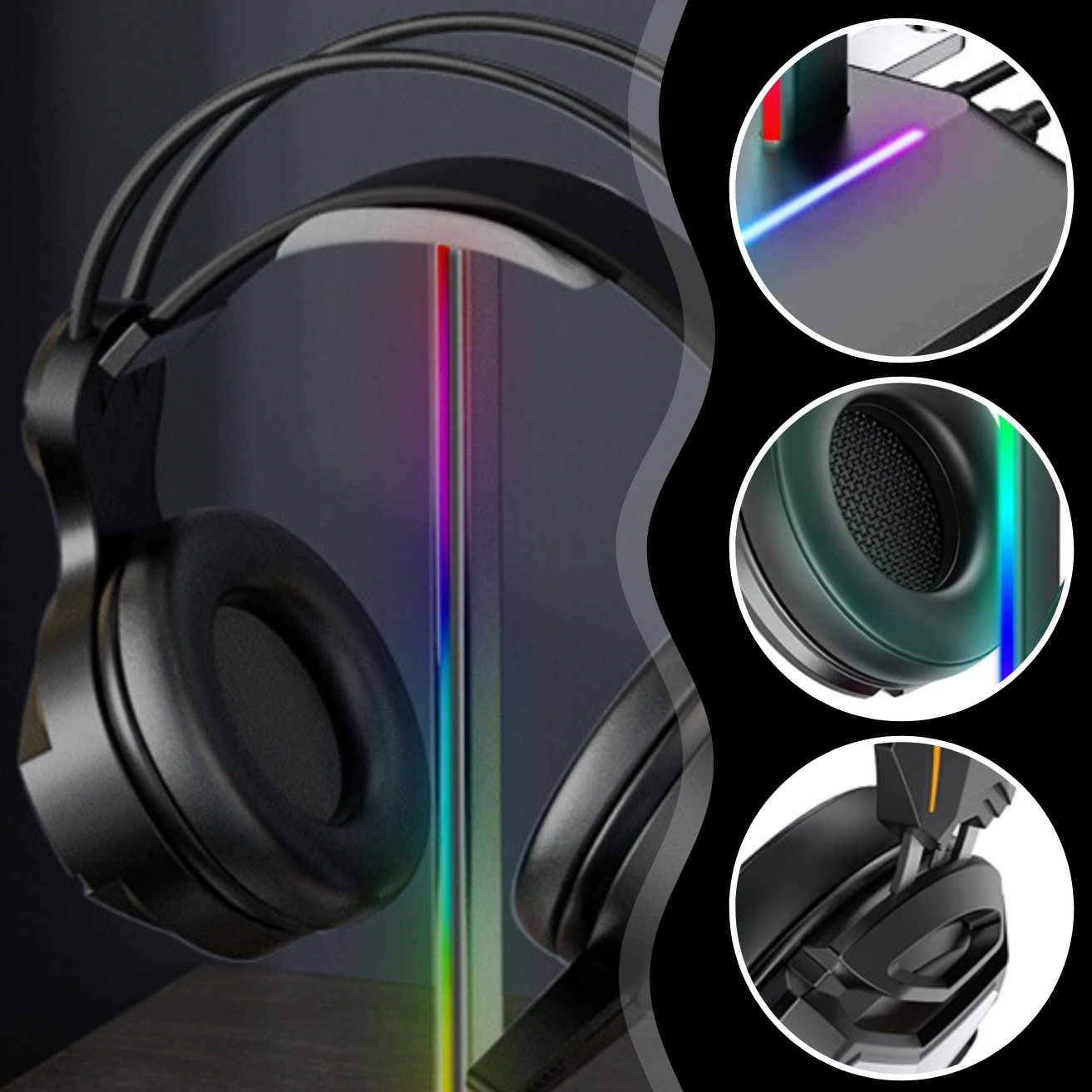 НАУШНАЯ ПОДСТАВКА ДЛЯ ИГРОВЫХ НАУШНИКОВ СВЕТОДИОДНАЯ RGB ПОДСВЕТКА РУЧКА USB-ХАБЛА