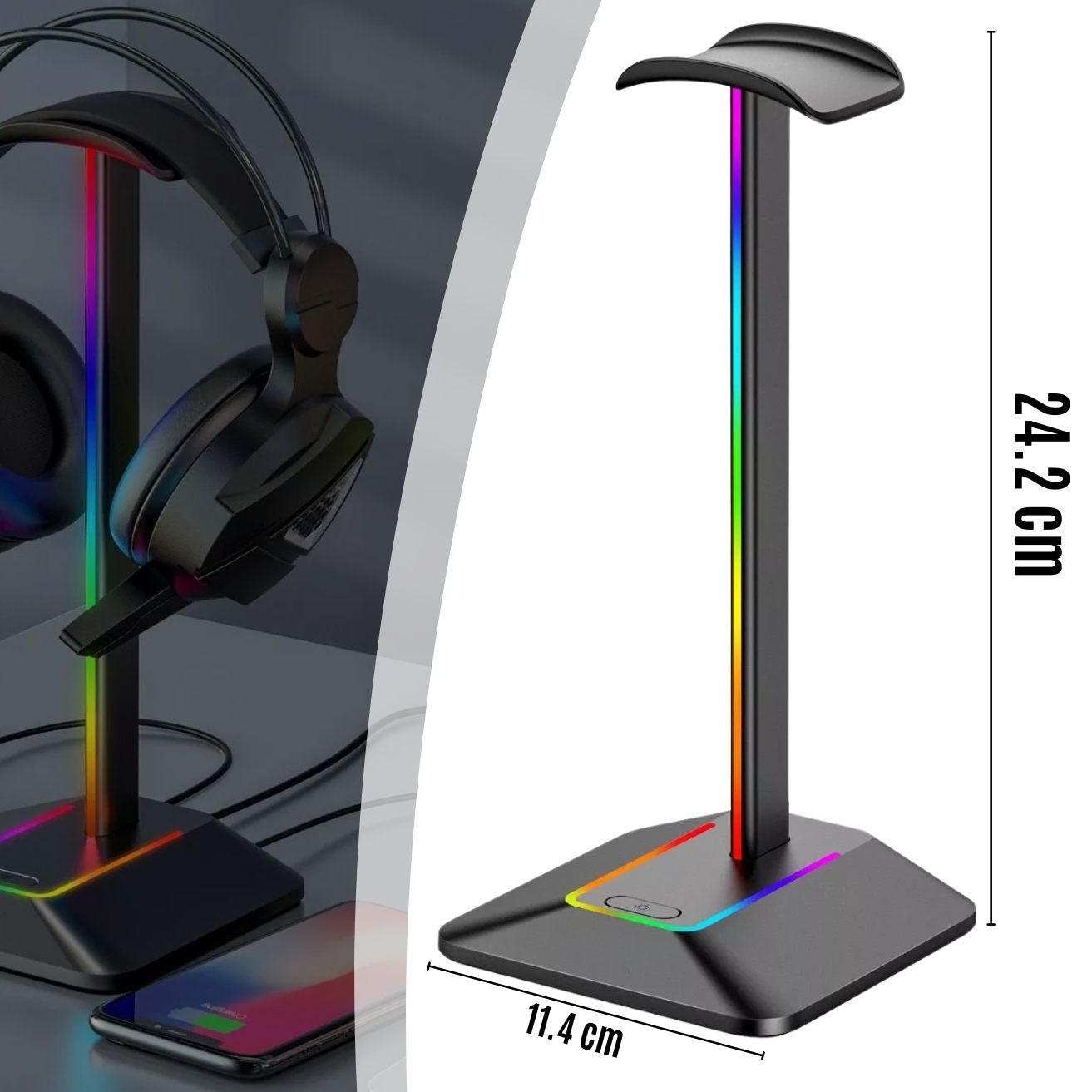 ✅ ИДЕАЛЬНАЯ ИДЕЯ ДЛЯ ПОДАРКА – подставка для наушников с RGB-подсветка — идеальный подарок для каждого геймера, меломана или человека, ценящего эстетику своего стола. Элегантный дизайн и функциональность делают его практичным и эффективным. подарок.