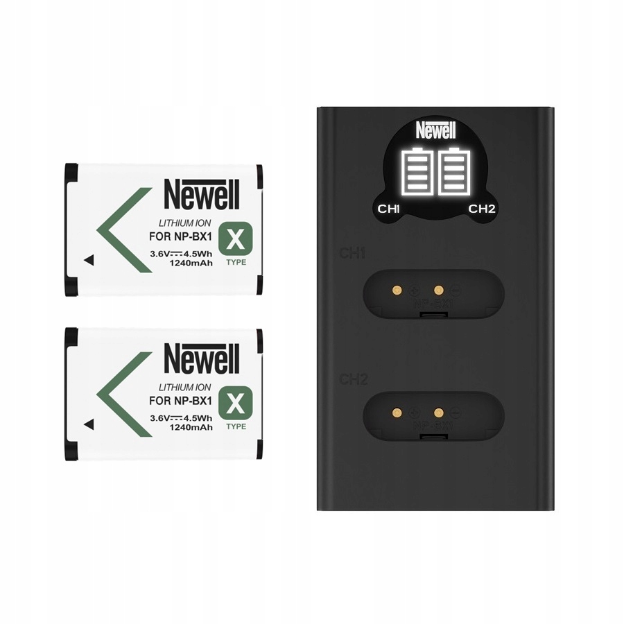 2x Newell NP-BX1 battery + two-channel charger with display h1> Product features: h2> - Set two-charger Newell DL-USB-C charger and two batteries NP-BX1 for SONY,