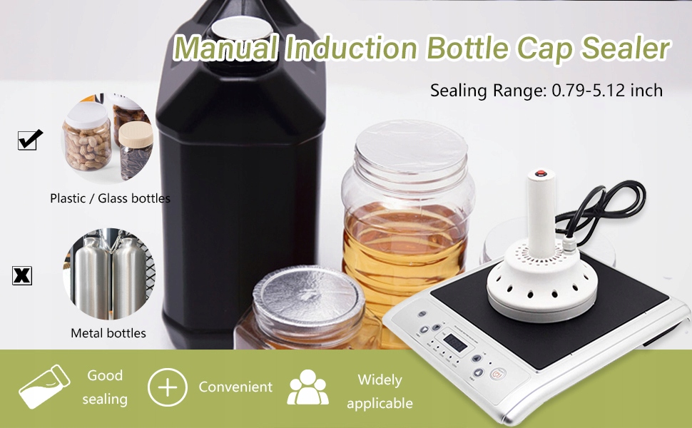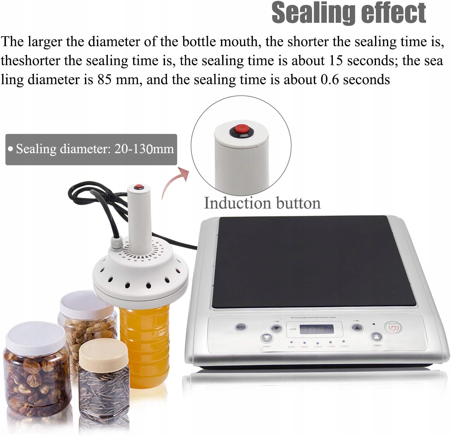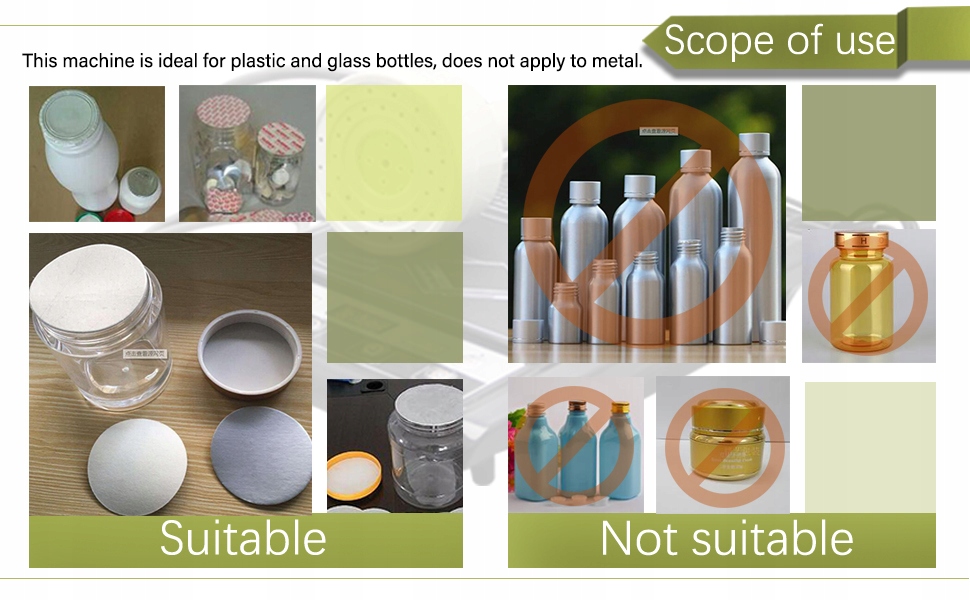 . (1,57-4,53 дюйма) Пластиковые и стеклянные бутылки. Это устройство не может быть использовано для металлических крышек для бутылок, бутылок и крышек с острыми губами и не подходит для вакуумного покрытия алюминия. Материалом закрытого контейнера может быть полиэтилен (PE), полипропилен (PP), полиэстер (PET), полистирол (PS), ABS, стекло и т. Д. потребление энергии. Вентилятор с высоким качеством теплового рассеяния, утолщенная индукционная катушка и чувствительная реакция, высокотемпературная устойчивая проволока. Он также имеет функцию подсчета, автоматическое перегрев, переоборудование и защита от перегрузки