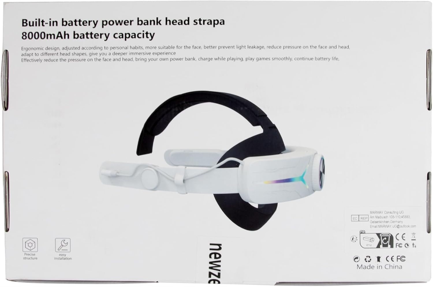 newzerol Headband Powerbank 8000mah oculus Quest 3 RGB Bess Lights H2>