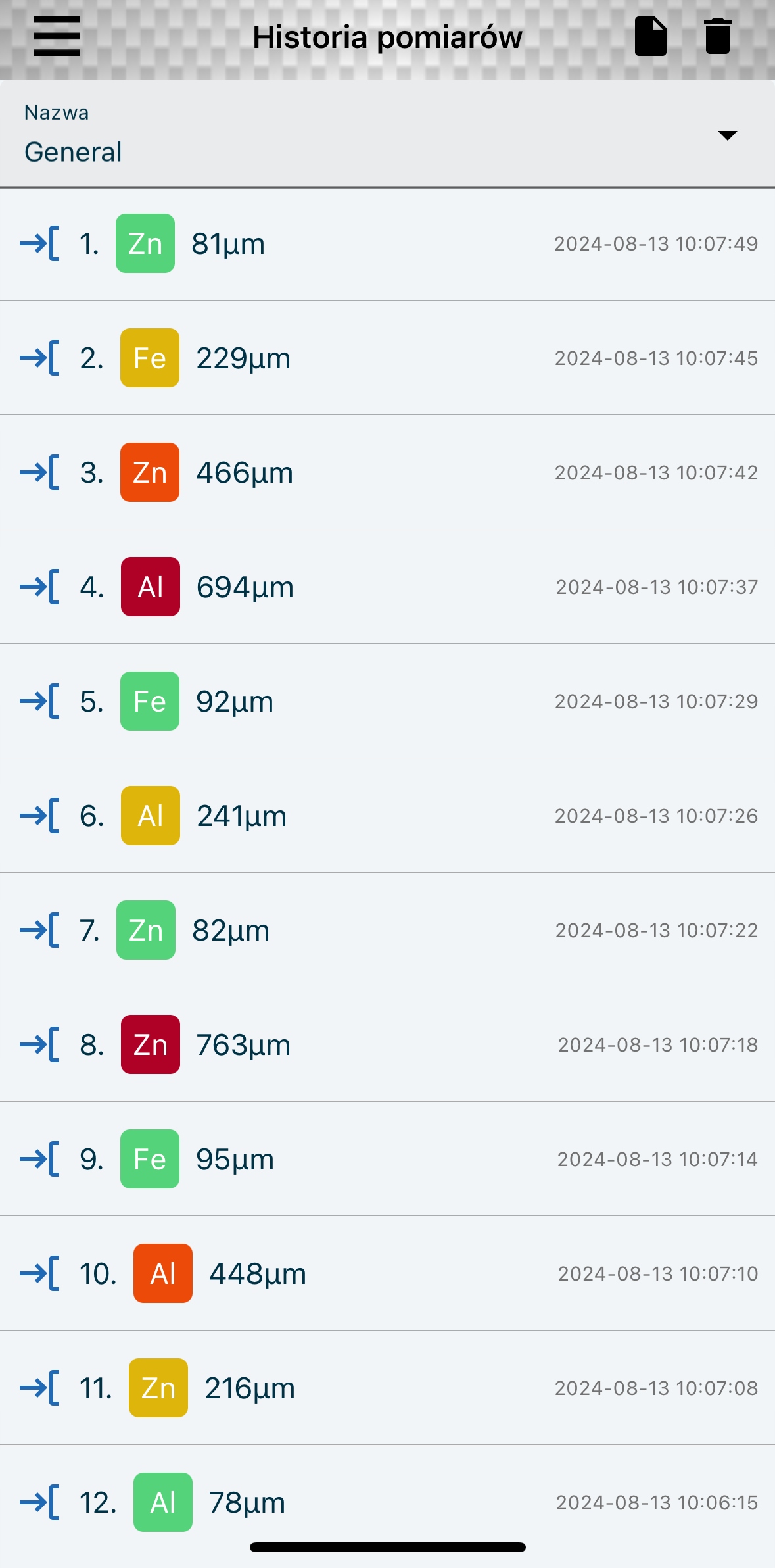 - Разрешение измерения: 1 мкм (0,04 мил) — обеспечивает точные показания, необходимые для профессионального анализа. Распознавание подложек: Сталь (Fe), Оцинкованная сталь / b> (Fe+Zn), Алюминий (Al) – универсальность в распознавании различных материалов, используемых в транспортных средствах.