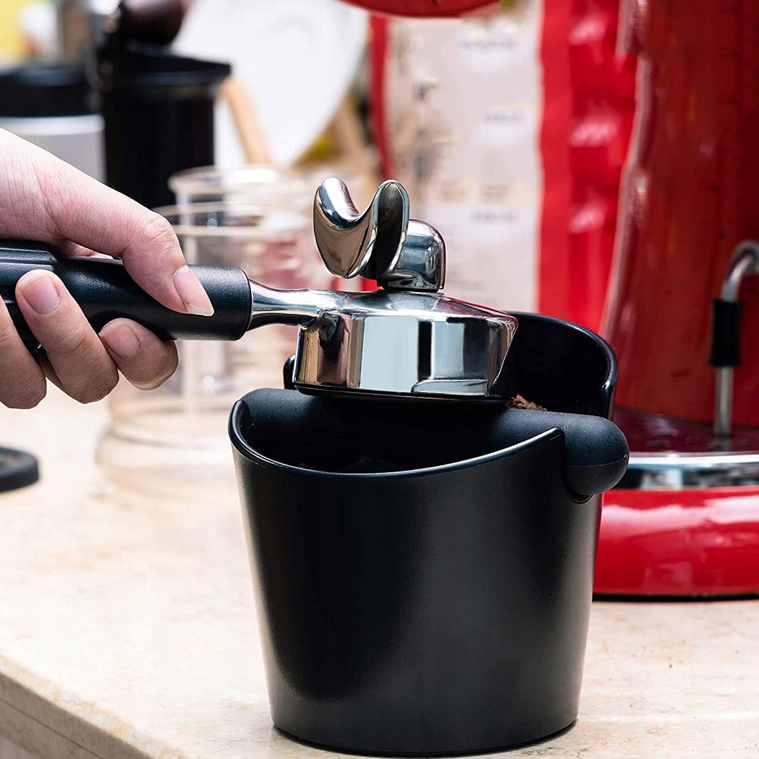 ☕☕ Easy to clean】 Removable tap lever can be removed from the plastic housing for emptying and cleaning, thanks to the large hole container for the pittals can be emptied without obstacles, a tea container for portafilter Espresso