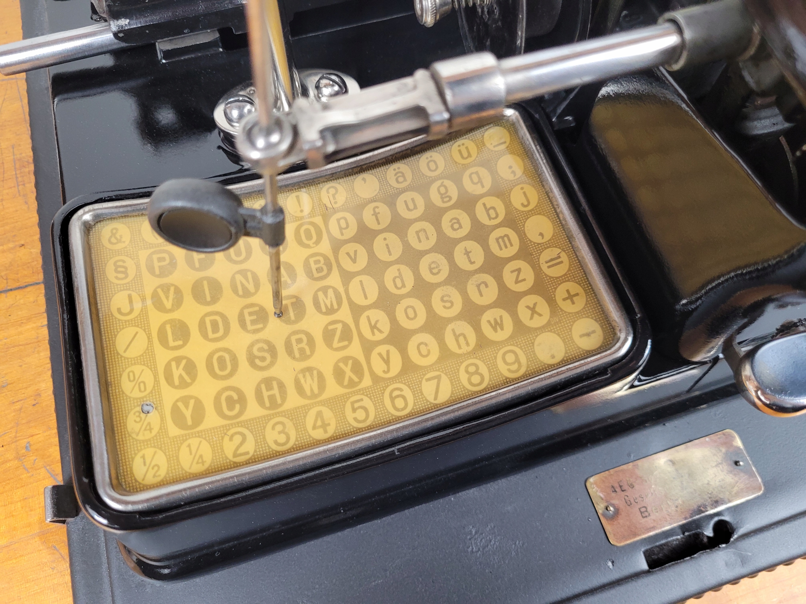 Особенность: для письма использовался специальный стилус, "плавающий по клавиатуре", декоративный курсив шрифт, красивый металлический корпус с подписью.