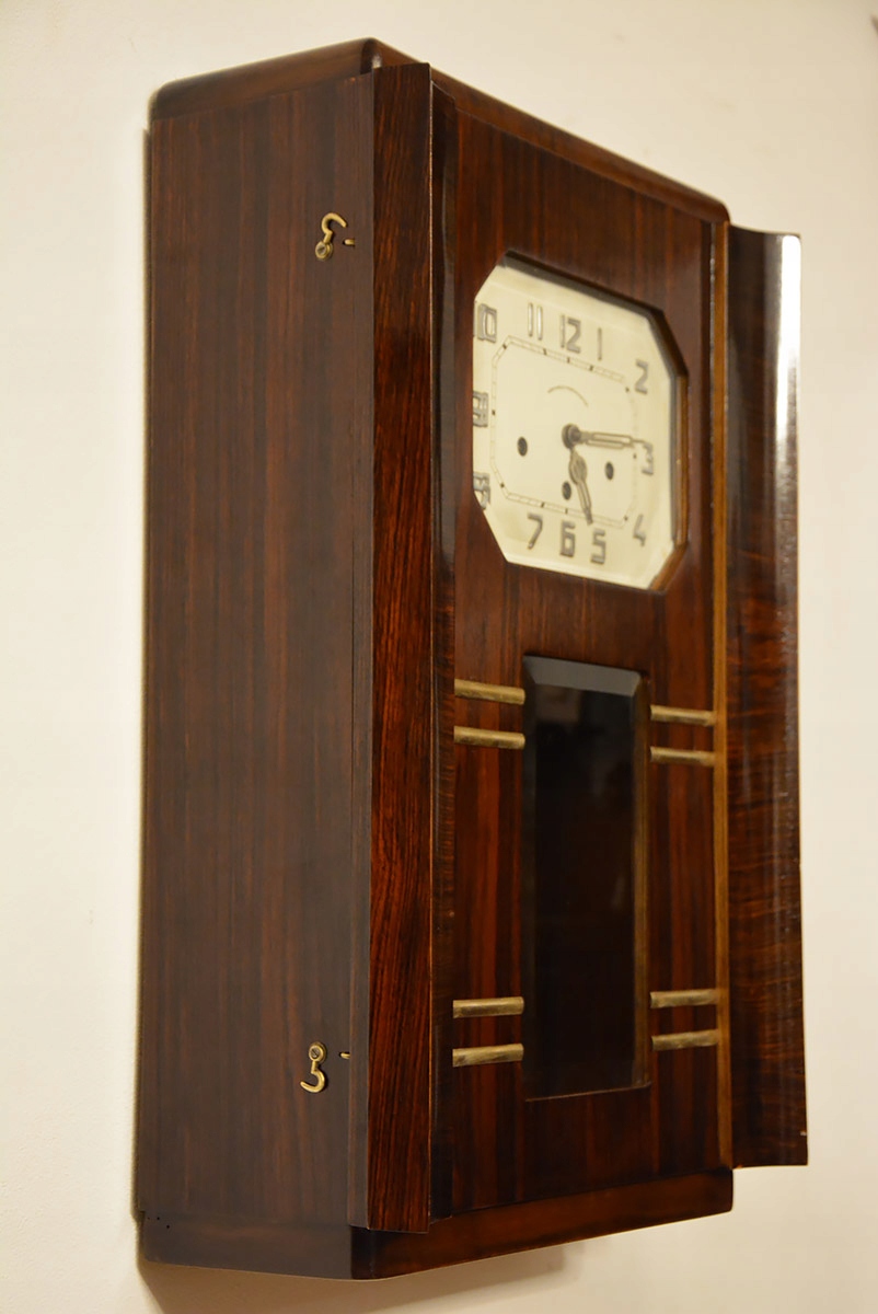 Необычные часы подвесные в стиле арт-деко . Датируется 1930-ми годами. Шпон палисандра!